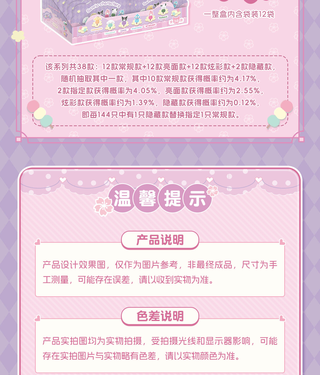 本产品包括不同颜色、款式或人物角色。每个款式单独发售并随机发货。