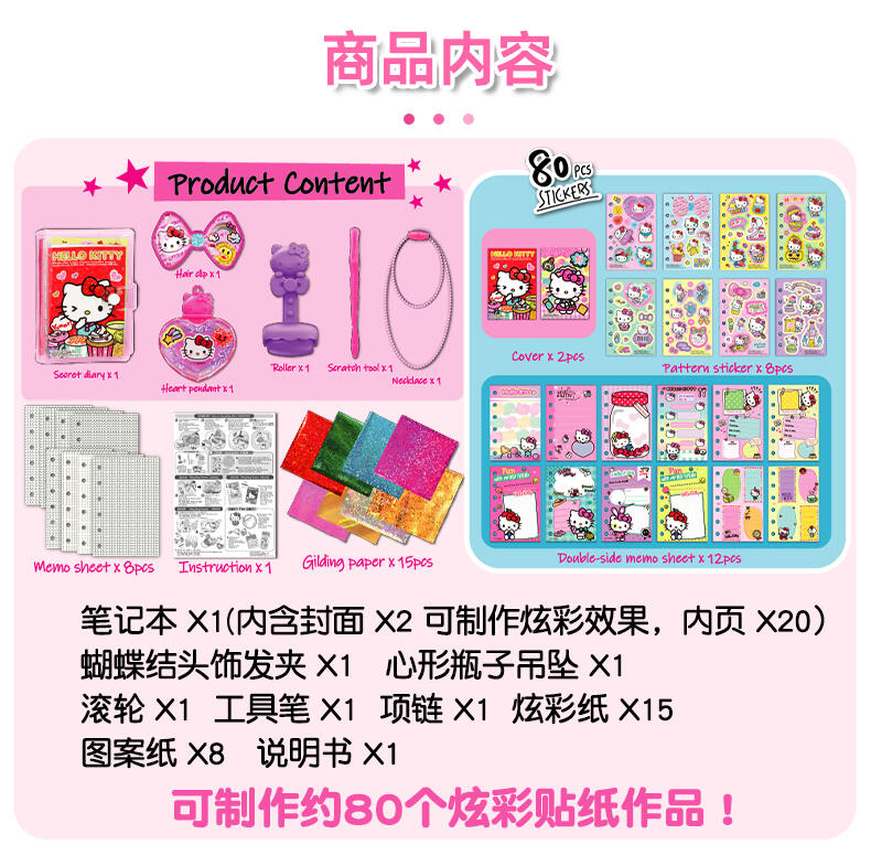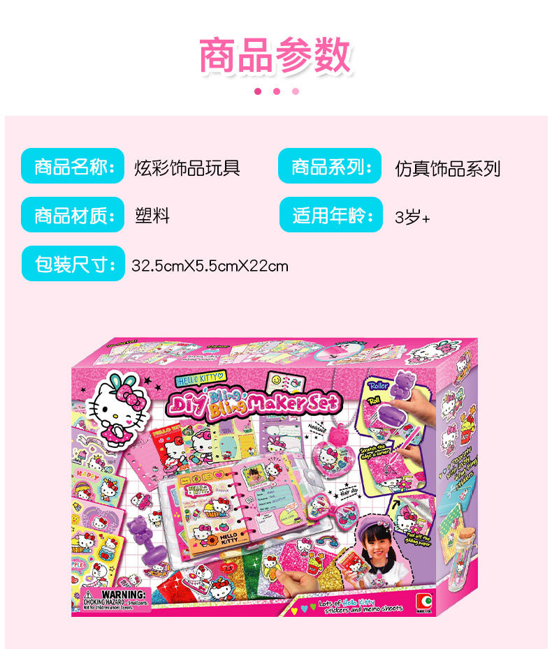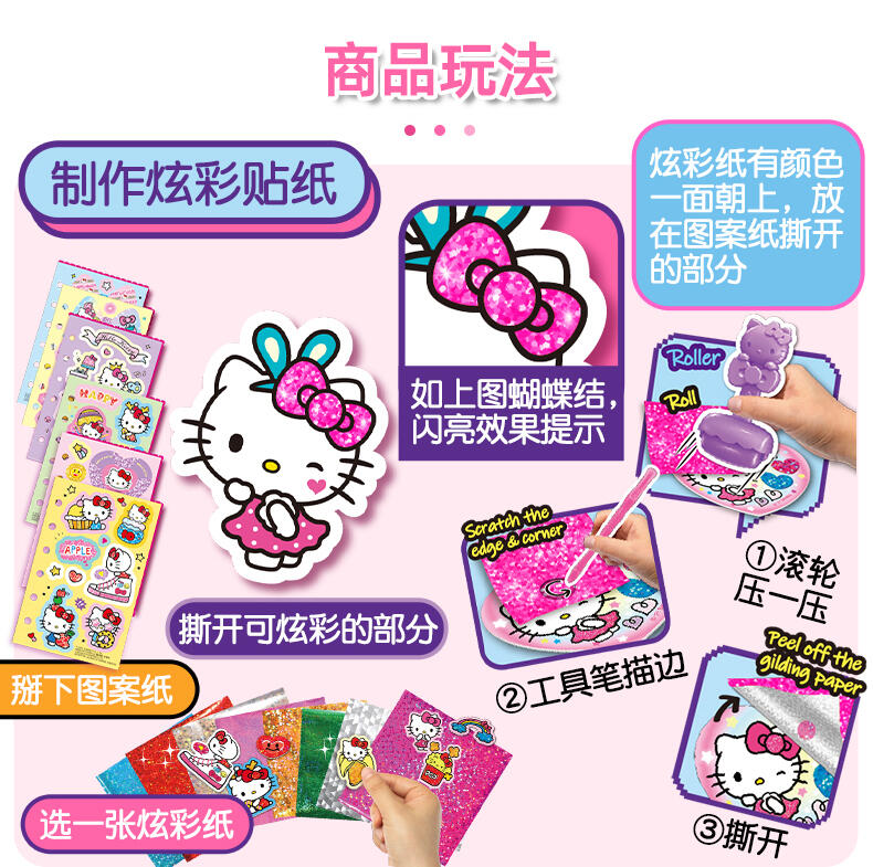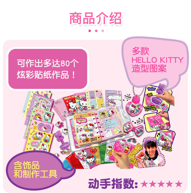 Hello Kitty炫彩饰品玩具,含饰品和制作工具,多款Hello Kitty造型图案。可作出多达80个炫彩贴纸作品,提升动手能力,闪亮的贴纸,由你来创!