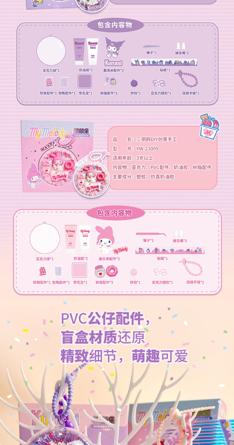 Sanrio三丽鸥 美乐蒂diy奶油胶亚克力球套装