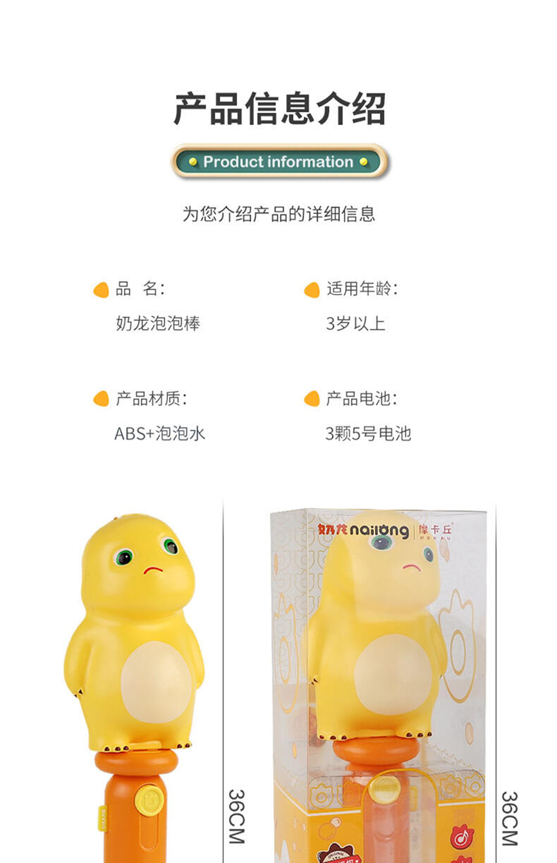 1,正版奶龙授权 2,一件出泡,温和泡泡液配方,安心使用 3,ABS材质,兼任耐摔 4,防漏设计,无惧倾斜