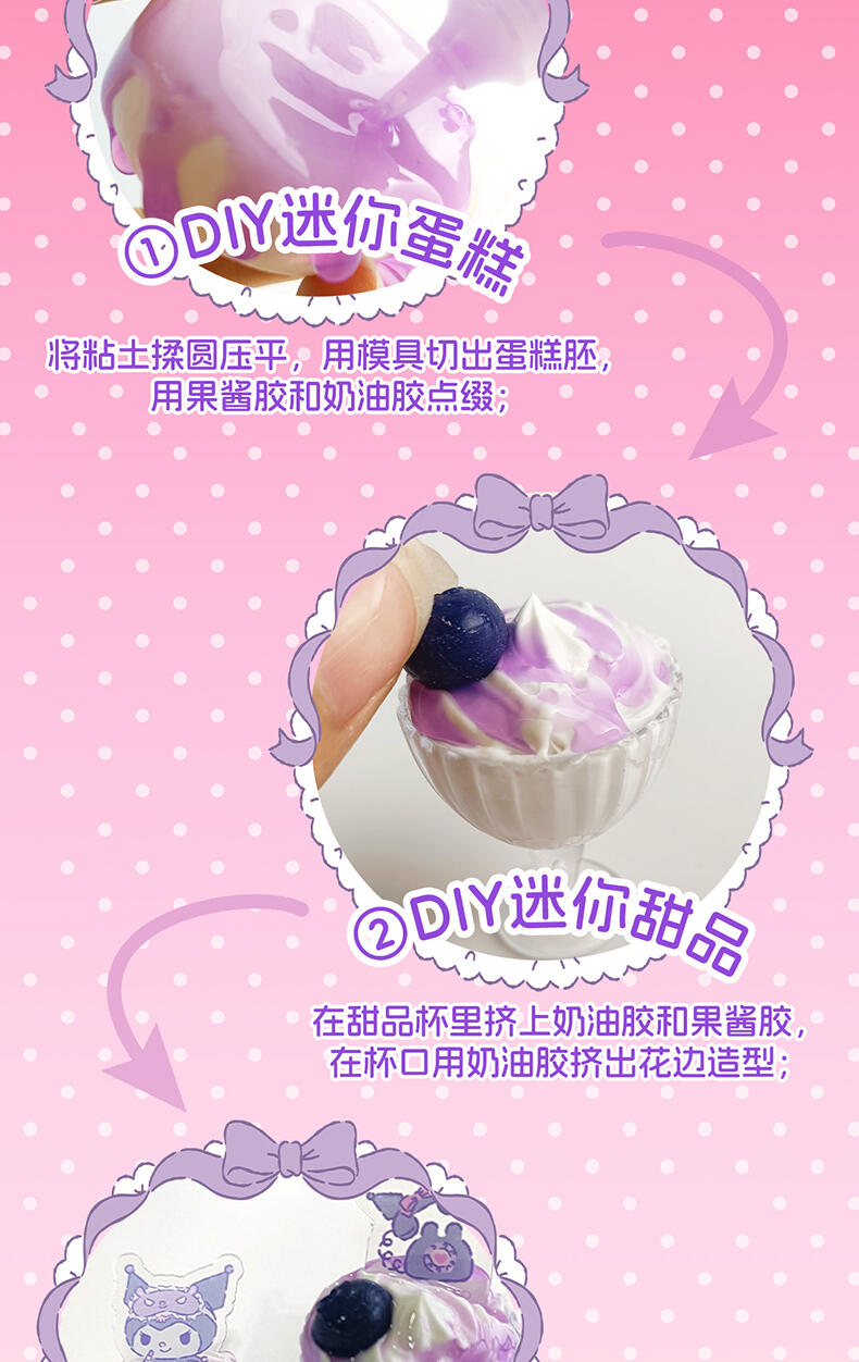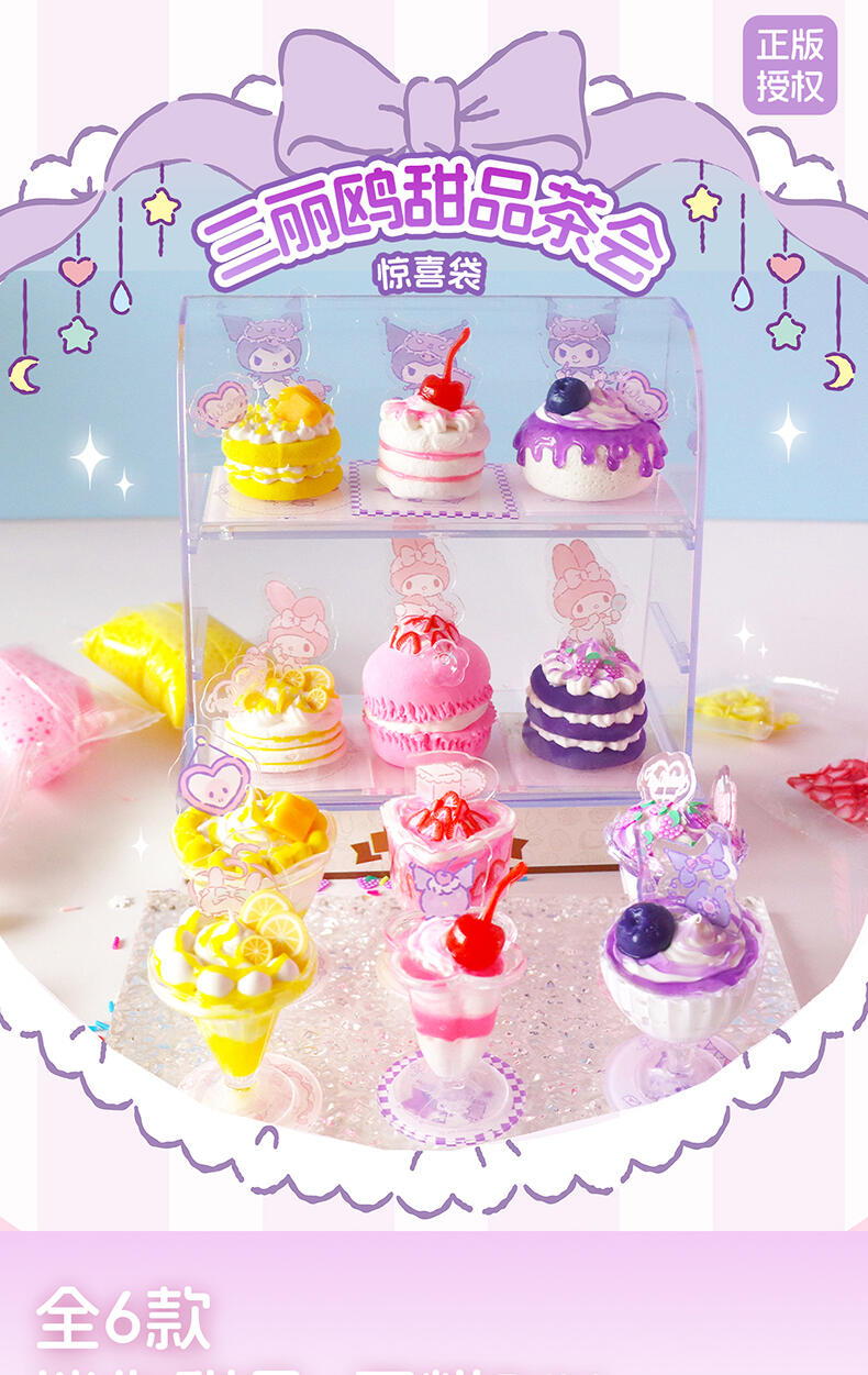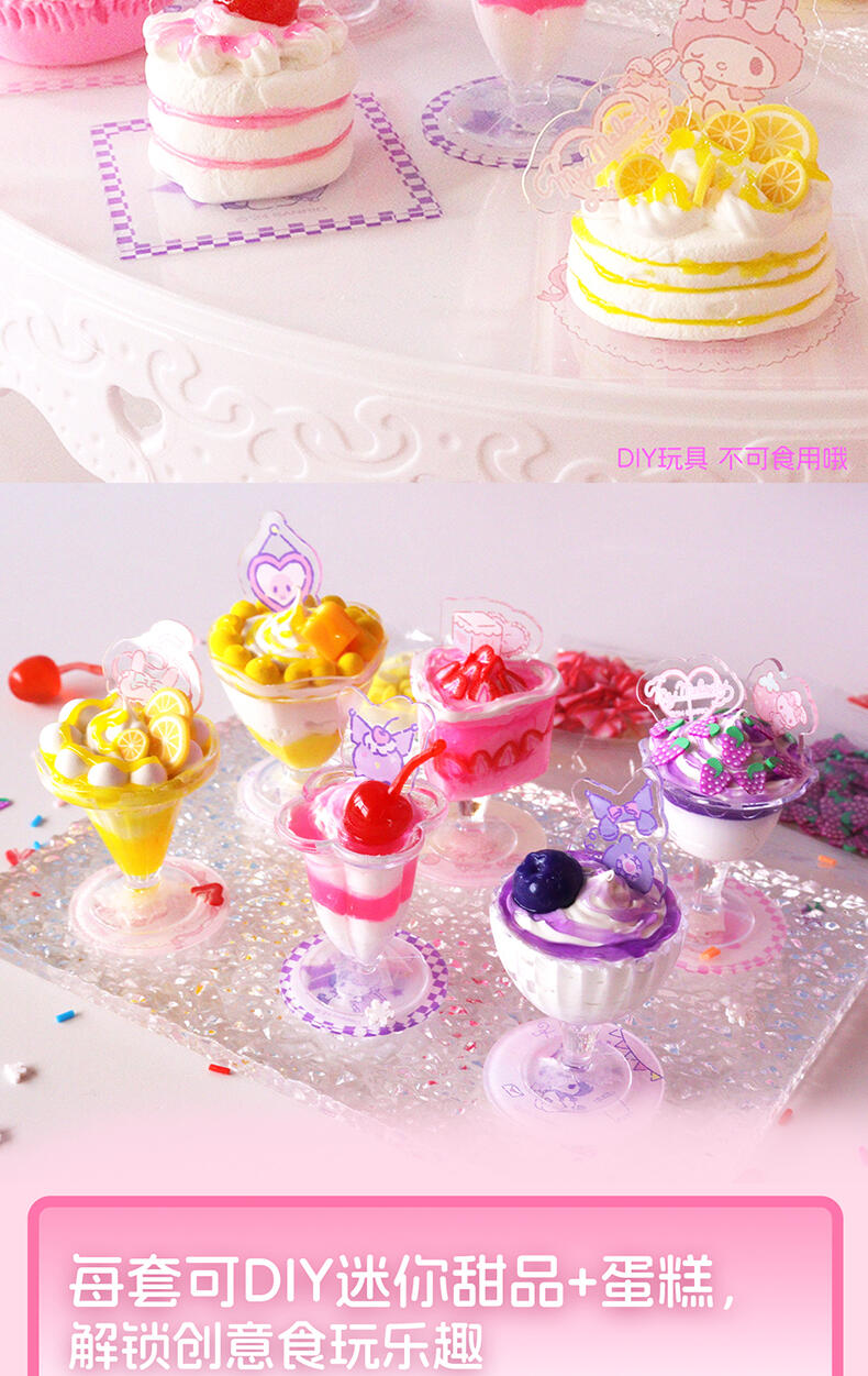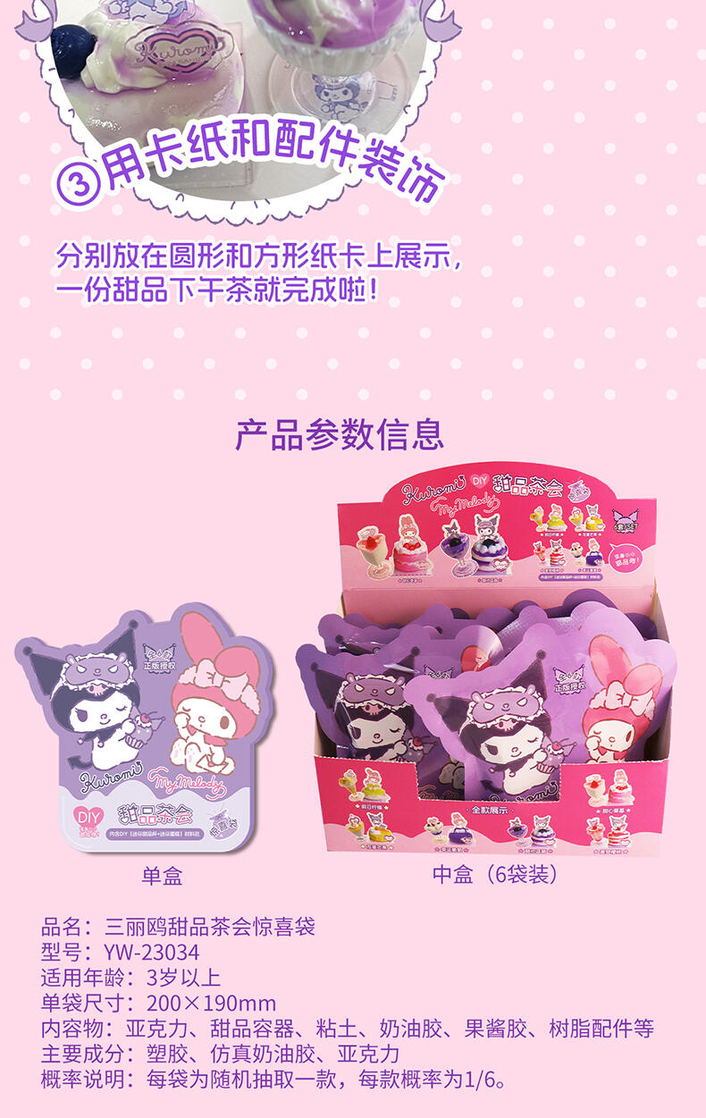 单个装,随机发货。 该系列全6款DIY惊喜袋 内含丰富材料包 色彩炫丽,启发创意,锻炼动手能力,变身小小甜品师