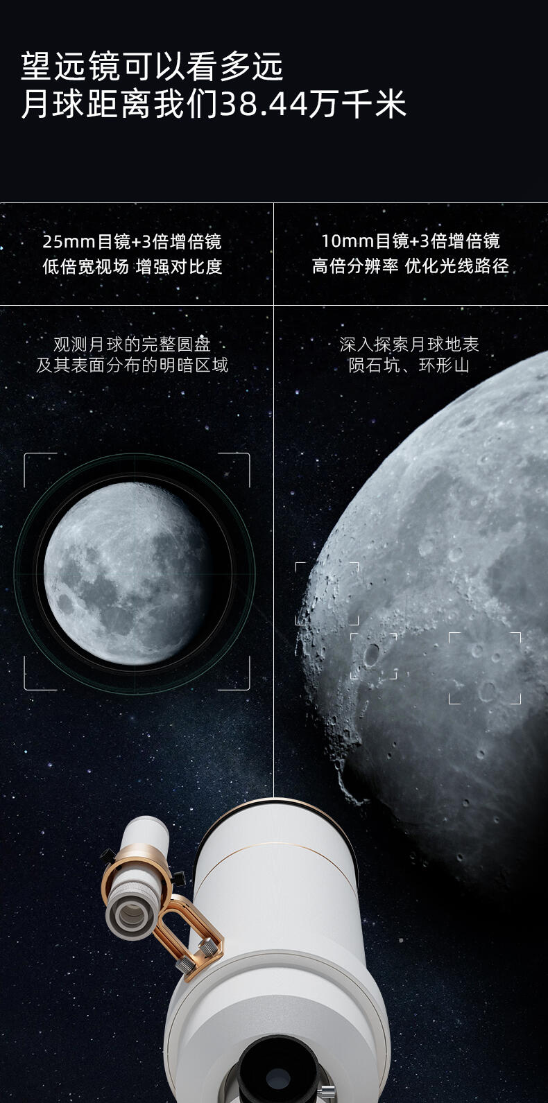 大口径,高倍数自带支架配备增倍镜多配件配送最高支持400倍