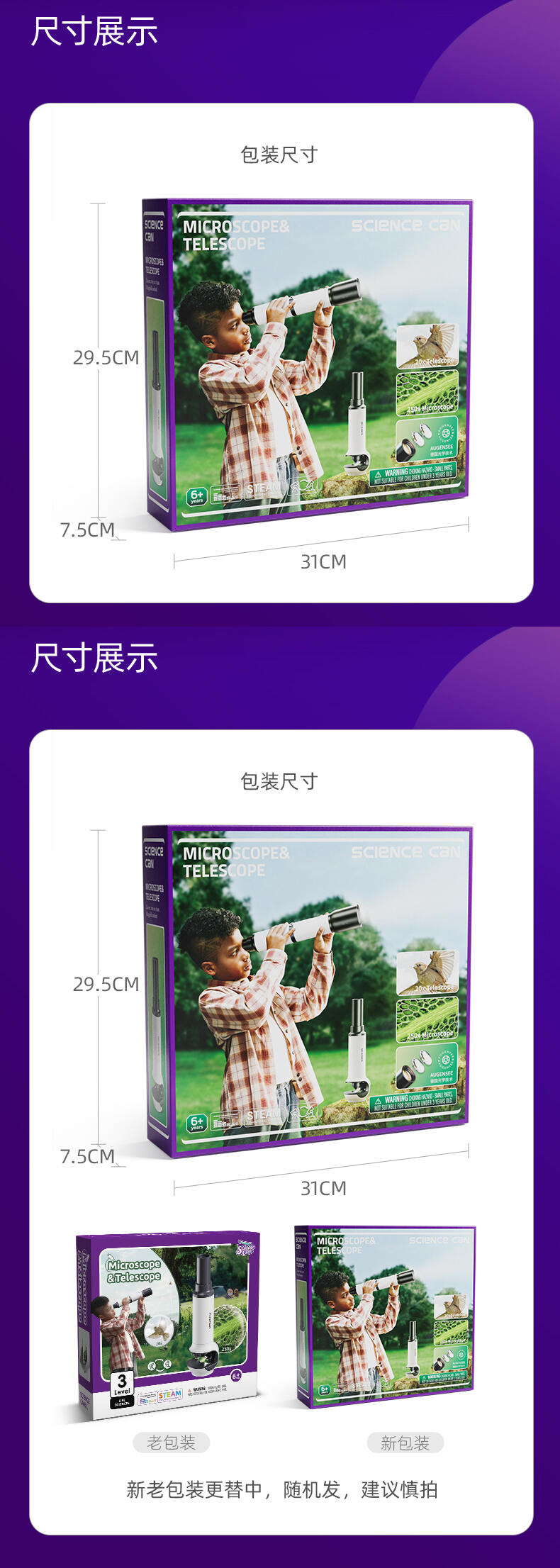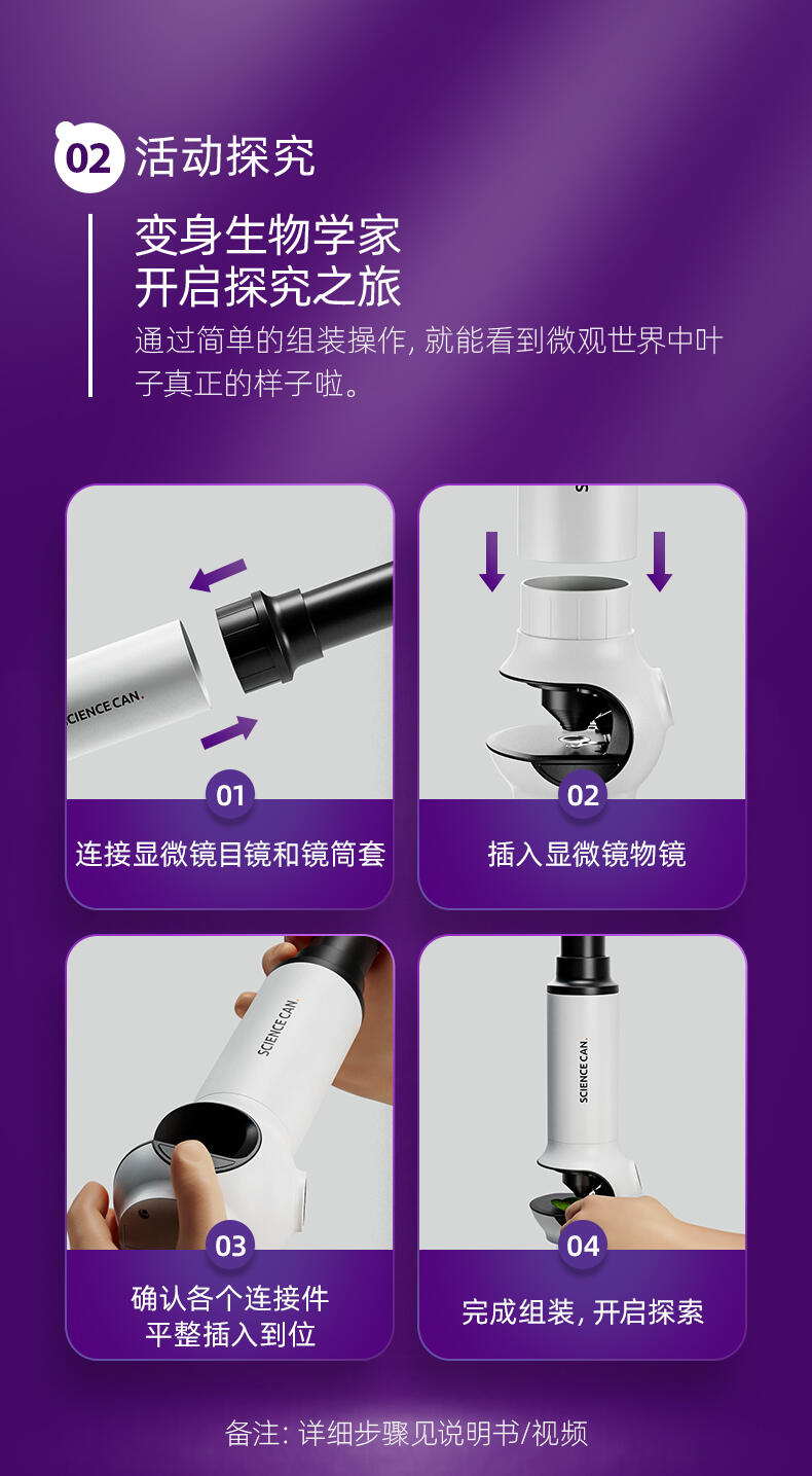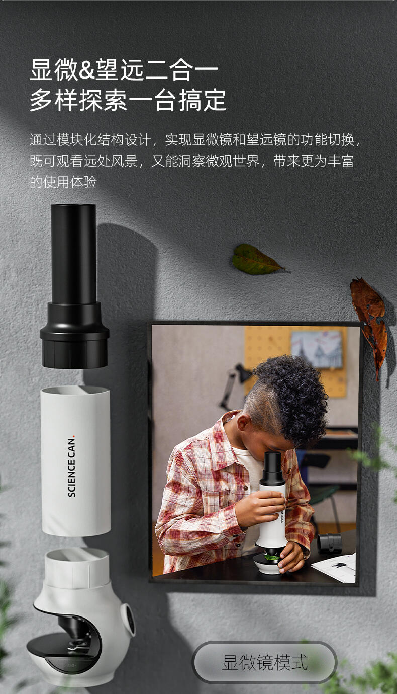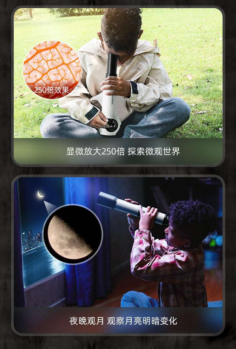 组装显微镜和望远镜玩具,供儿童观察玩耍,可发光。