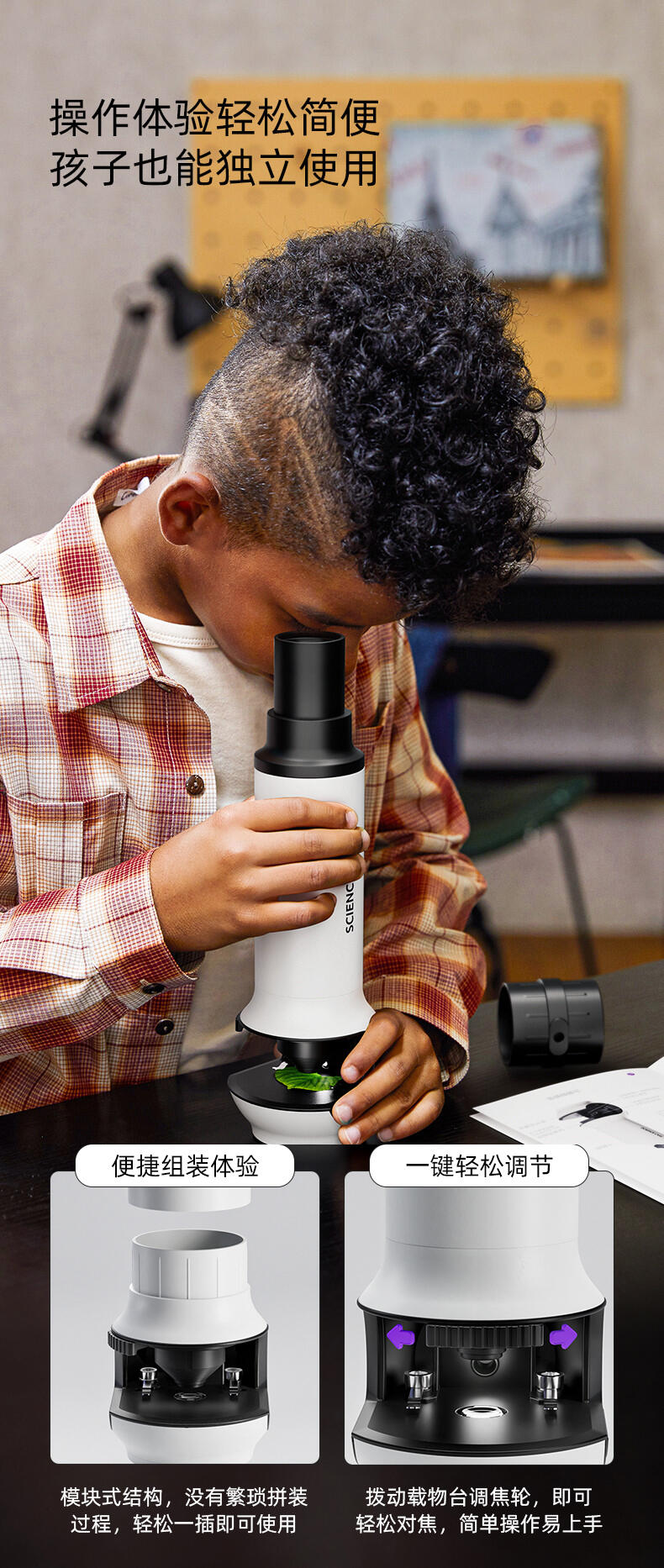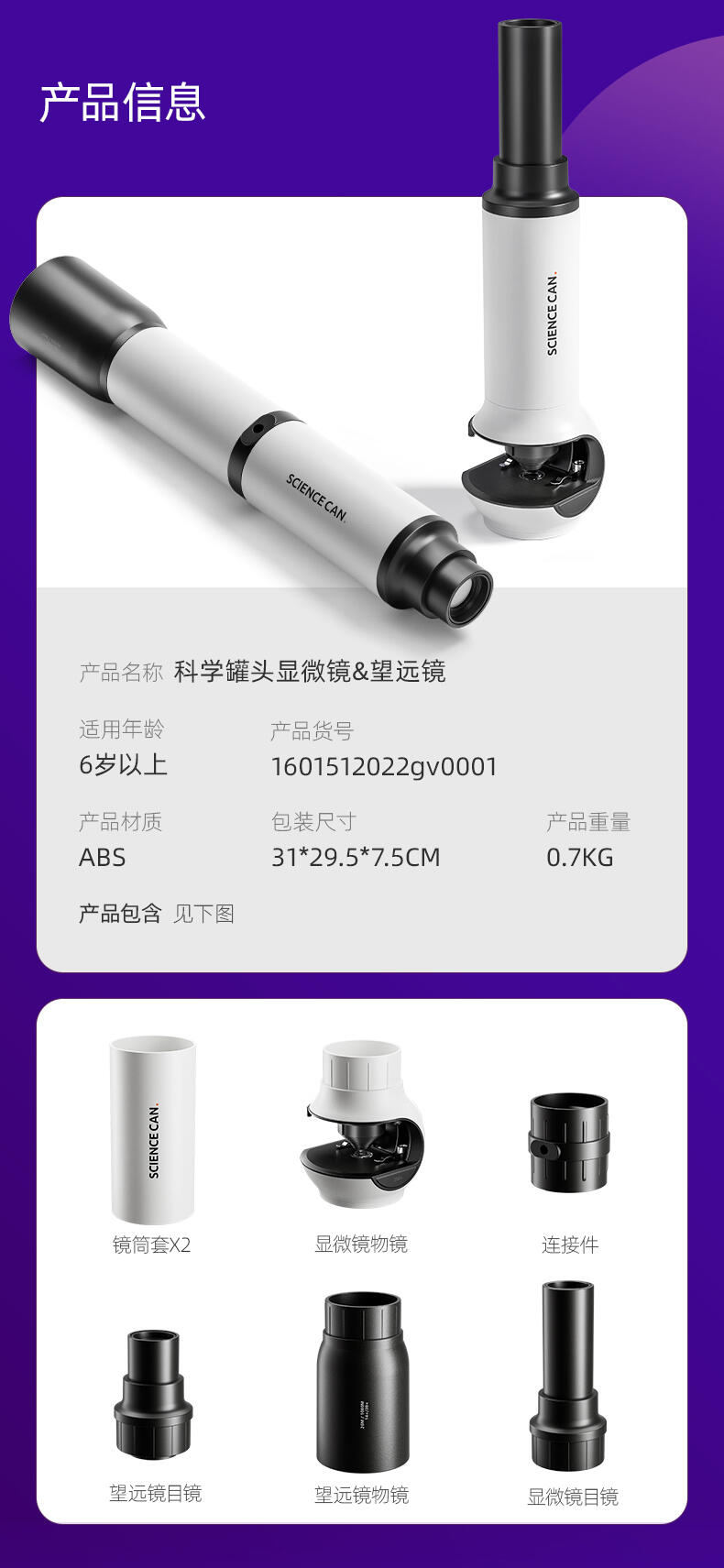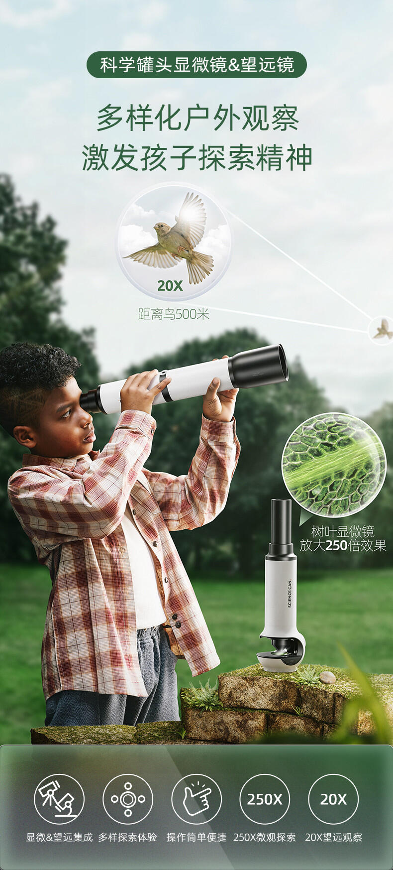 组装显微镜和望远镜玩具,供儿童观察玩耍,可发光。