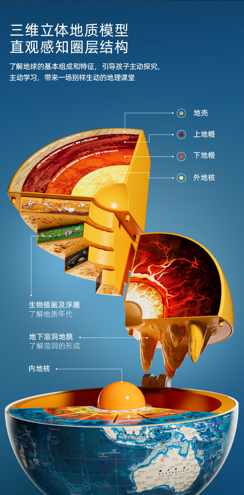 趣味挑战互动问答,帮助孩子巩固知识点。三维立体地质模型,直观感知圈层结构。会呼吸的地心世界,身临其境,沉浸式体验。