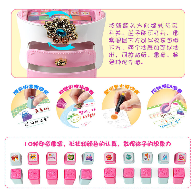 2.产品配件:美甲包包、图案图章、指甲油、磨砂、印泥垫、蜡纸墨水、多款平面或立体的美甲造型、装饰盒、滚轮图章、纸卡片、信封、戒指图章、指甲贴纸、指甲双面胶、宝石贴纸。
