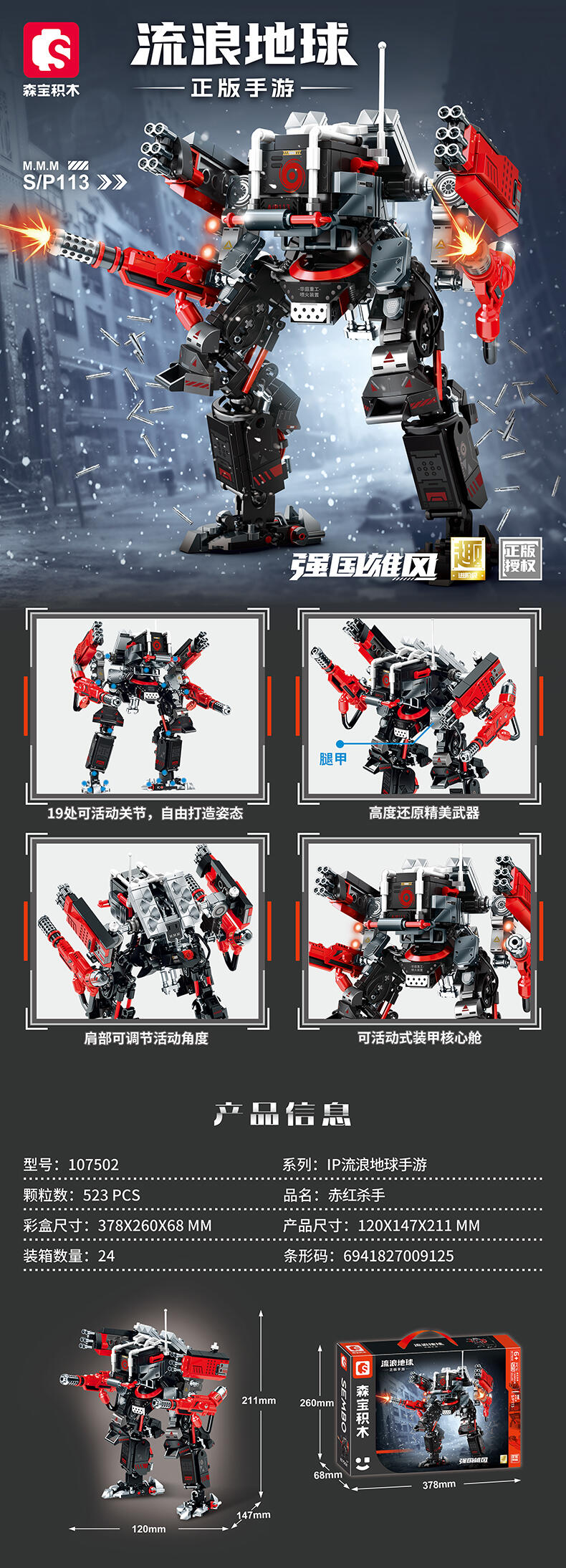 1.19处可活动关节 2.高度还原精美武器 3.肩部可调节活动角度 4.可活动式装甲核心舱