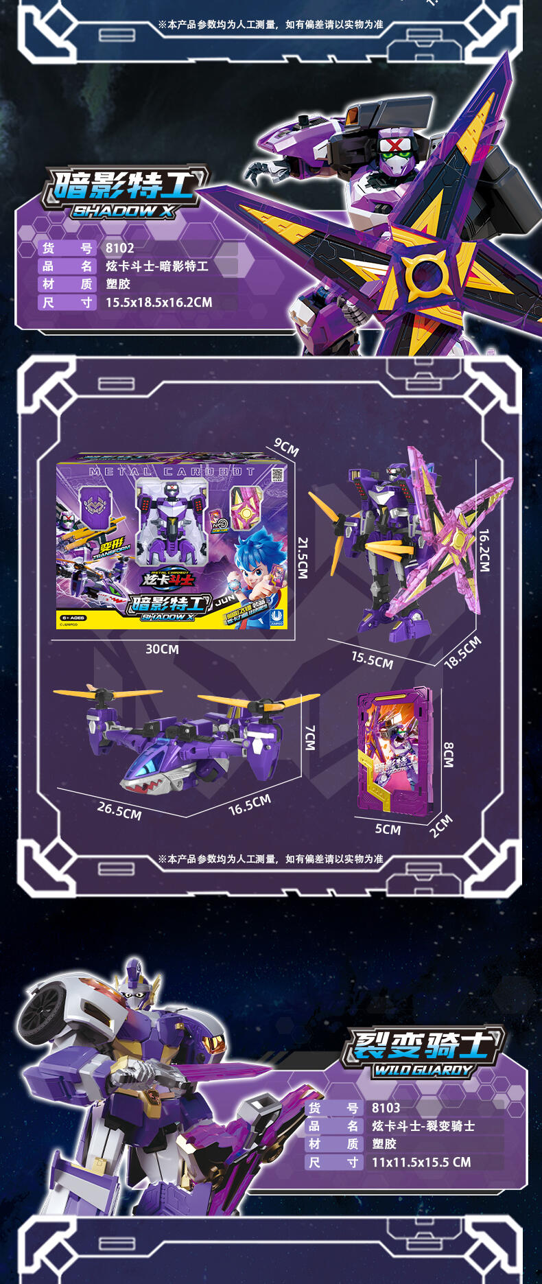 《炫卡斗士》动漫同款玩具,造型还原,变形可动,巨鲨直升机+暗影特工机器人 双形态,功能卡牌秒变武器,追击+战斗双属性