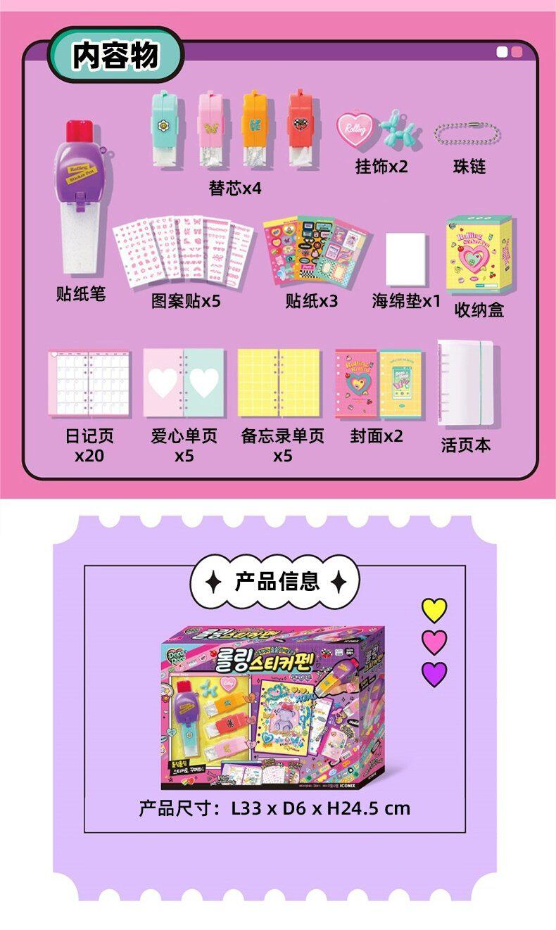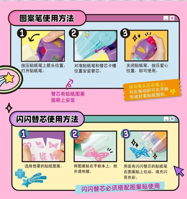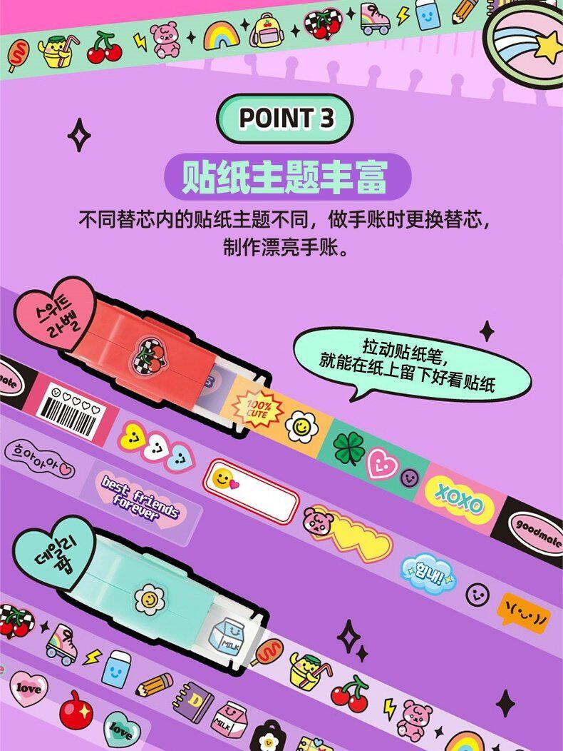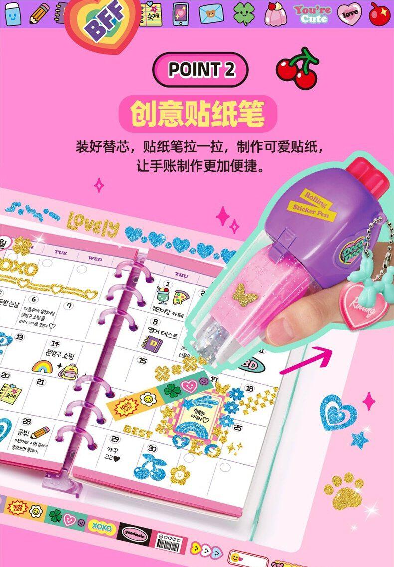 创新贴纸笔,滚动贴纸笔就能在手账上制作贴纸。让手账制作更丰富,更方便。