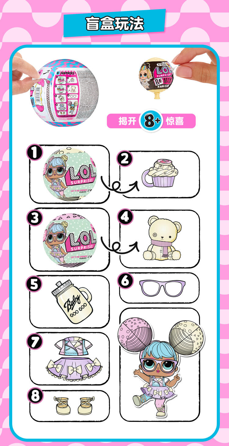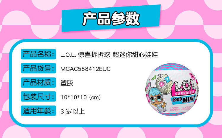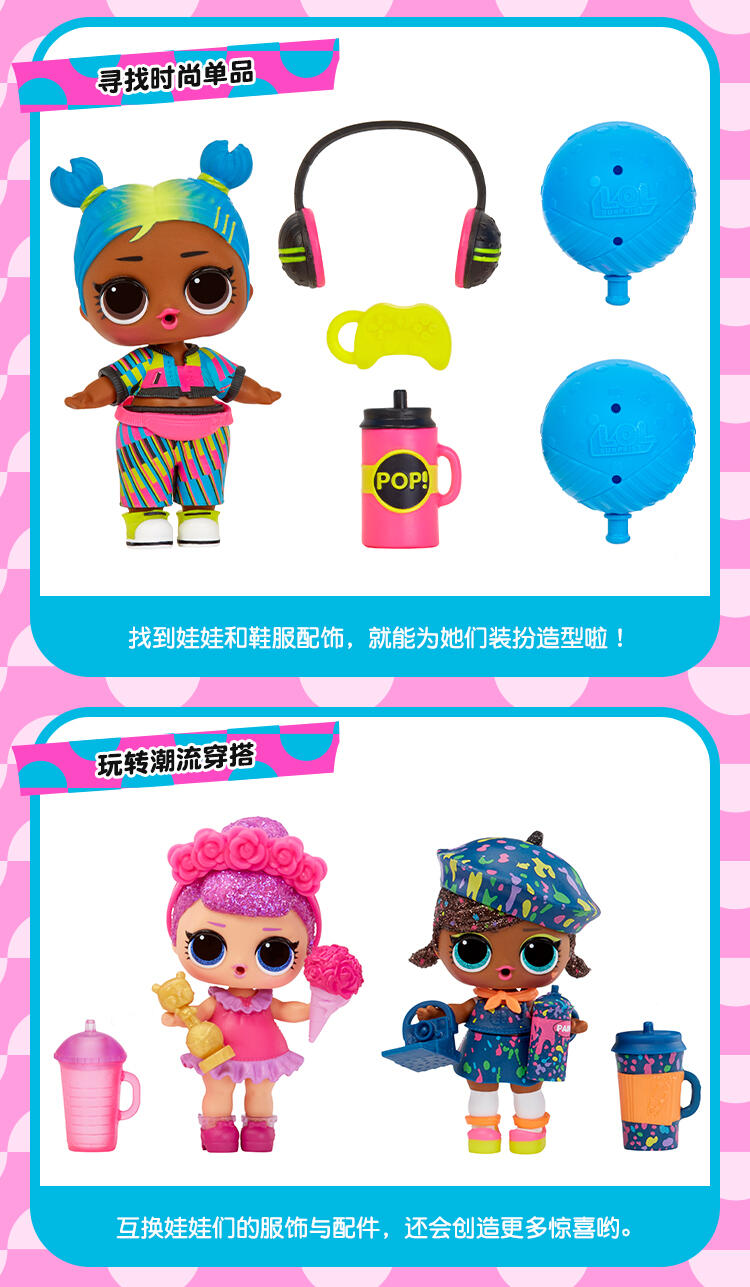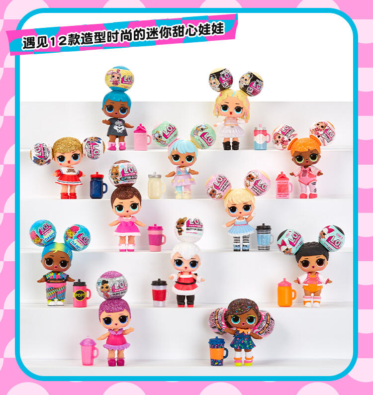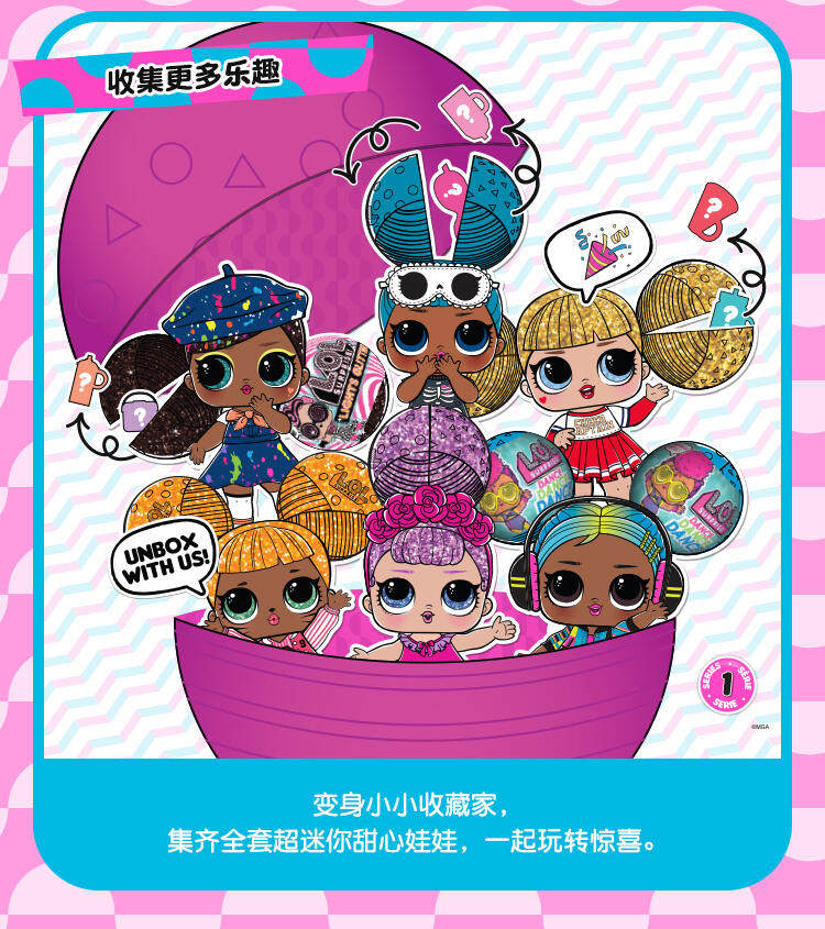 好多款,好袖珍!全新L.O.L. 惊喜袖珍娃娃!这些娃娃刚刚获得了迷你尺寸的大型升级!L.O.L. 惊喜娃娃头上有迷你L.O.L.经典包装球,比以前更多开箱体验!在迷你包装球发掘更多配件。