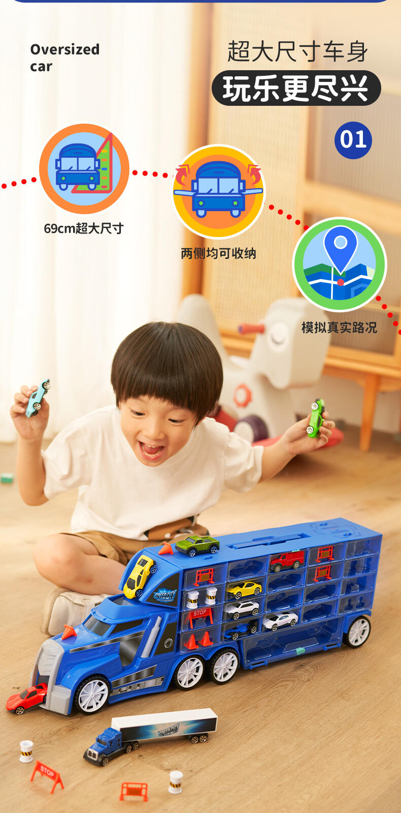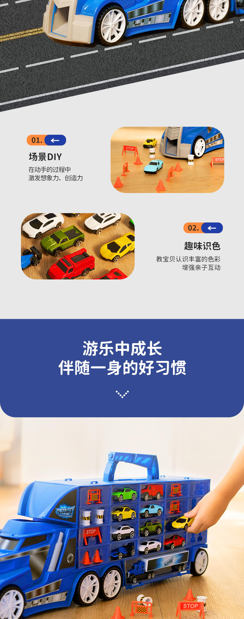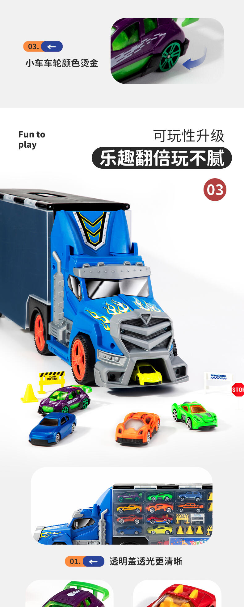 这款特技运输车设计非常方便,随身的设计非常适合在旅途中使用。斜坡让你轻松装载车队,所有车辆都准备就绪后,就可以随时出发。这套装配备11款独特车辆及其他配件,必定可激发想象力及创造力。