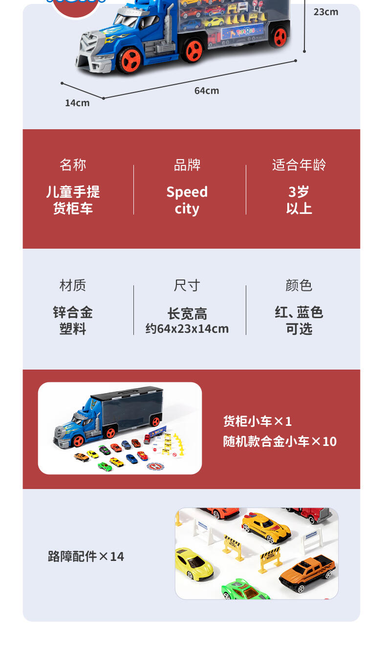 Speed City城市快线 合金小车运输车内含 11 辆小车 ( 红 )