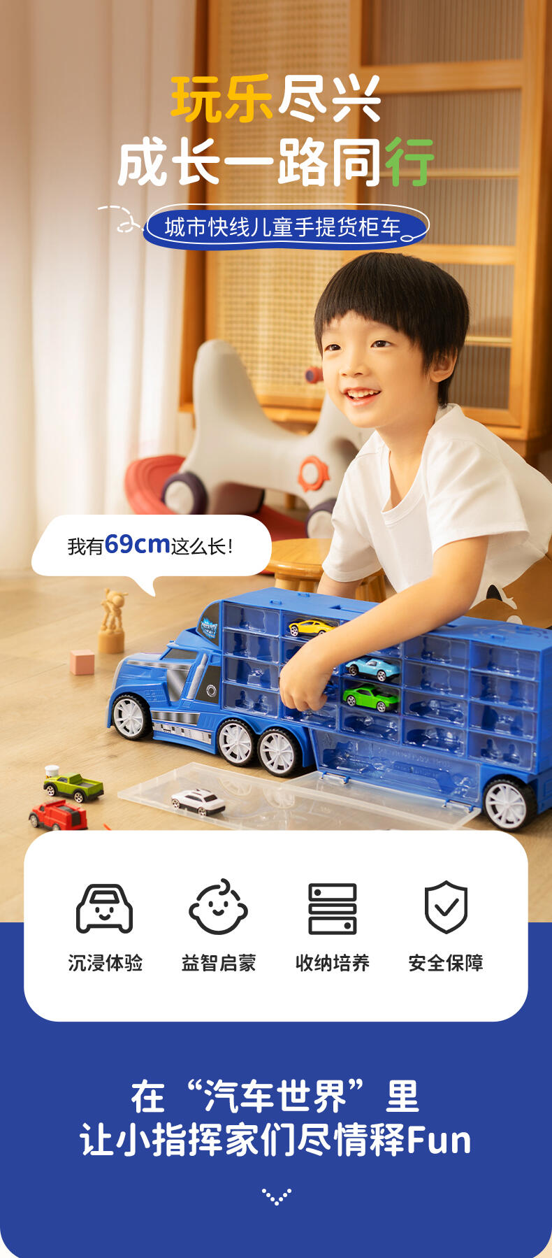 这款特技运输车设计非常方便,随身的设计非常适合在旅途中使用。斜坡让你轻松装载车队,所有车辆都准备就绪后,就可以随时出发。这套装配备11款独特车辆及其他配件,必定可激发想像力及创造力。