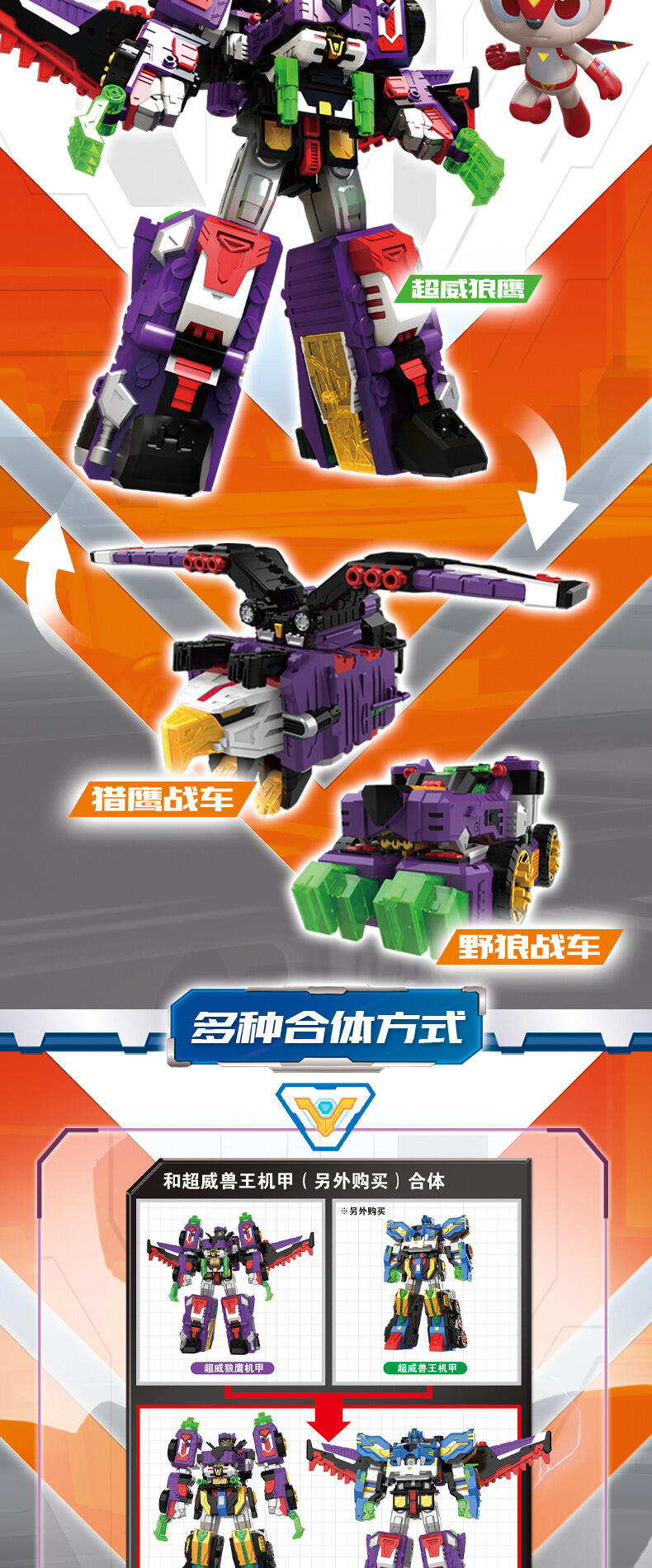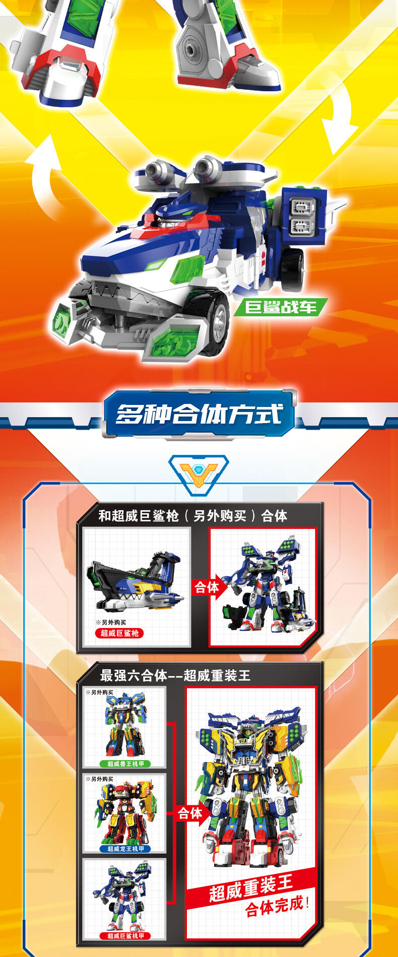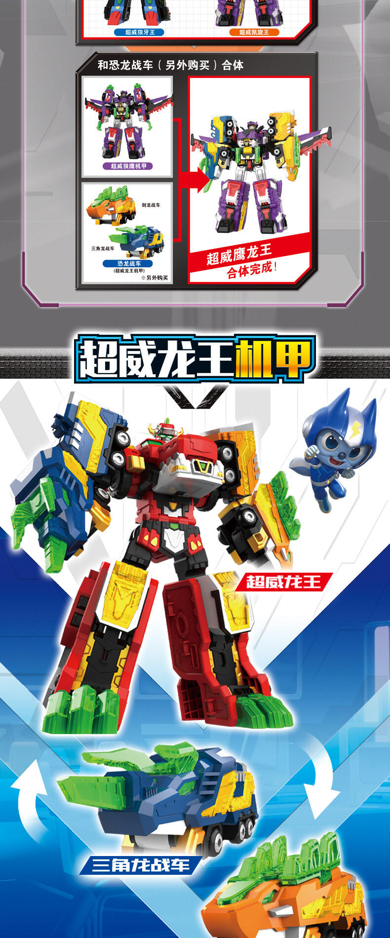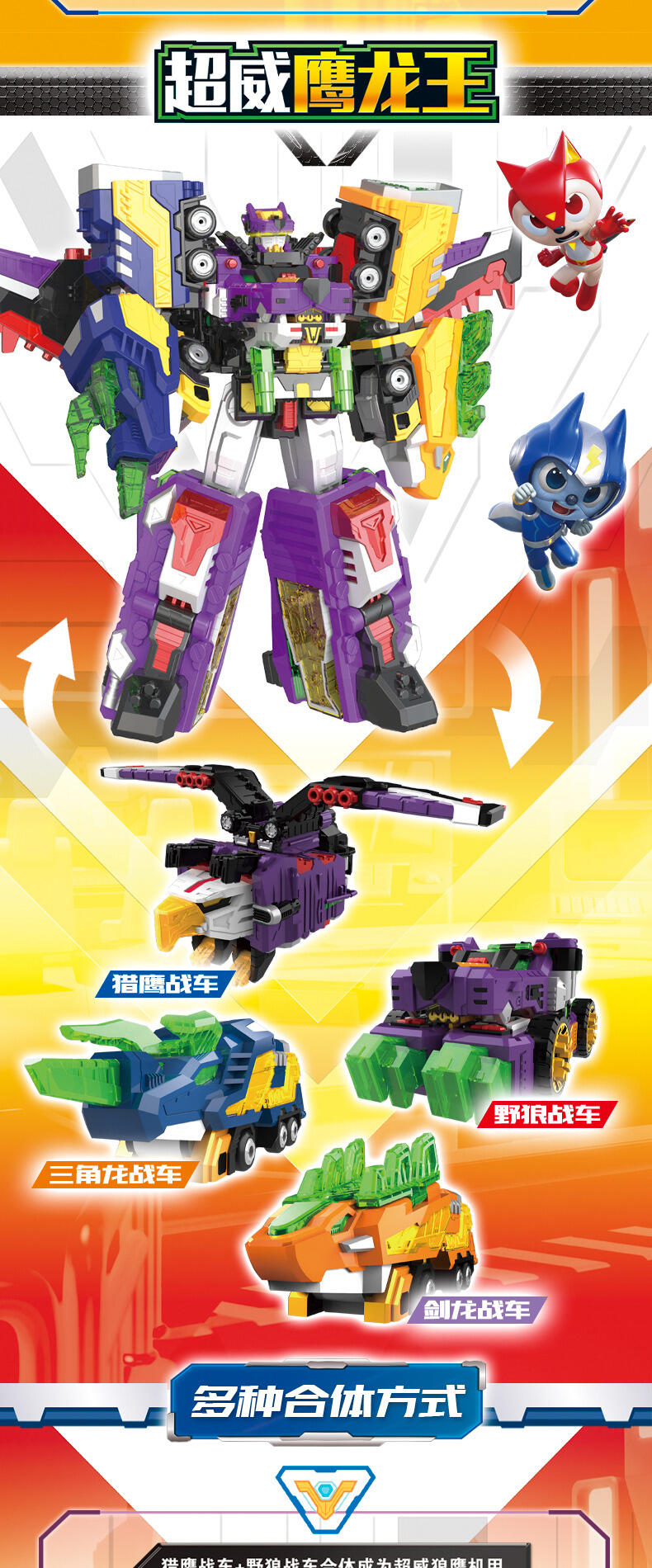 热播动漫同款,共4种模式,三角龙战车+野狼战车+猎鹰战车=可合体超威鹰龙王