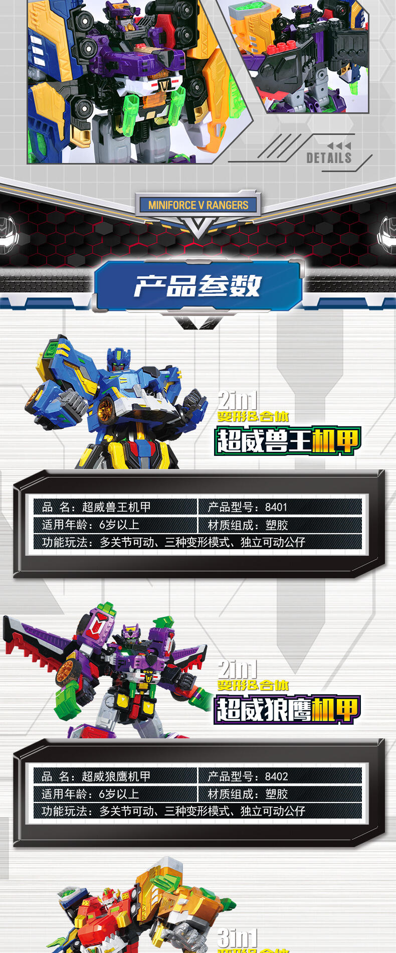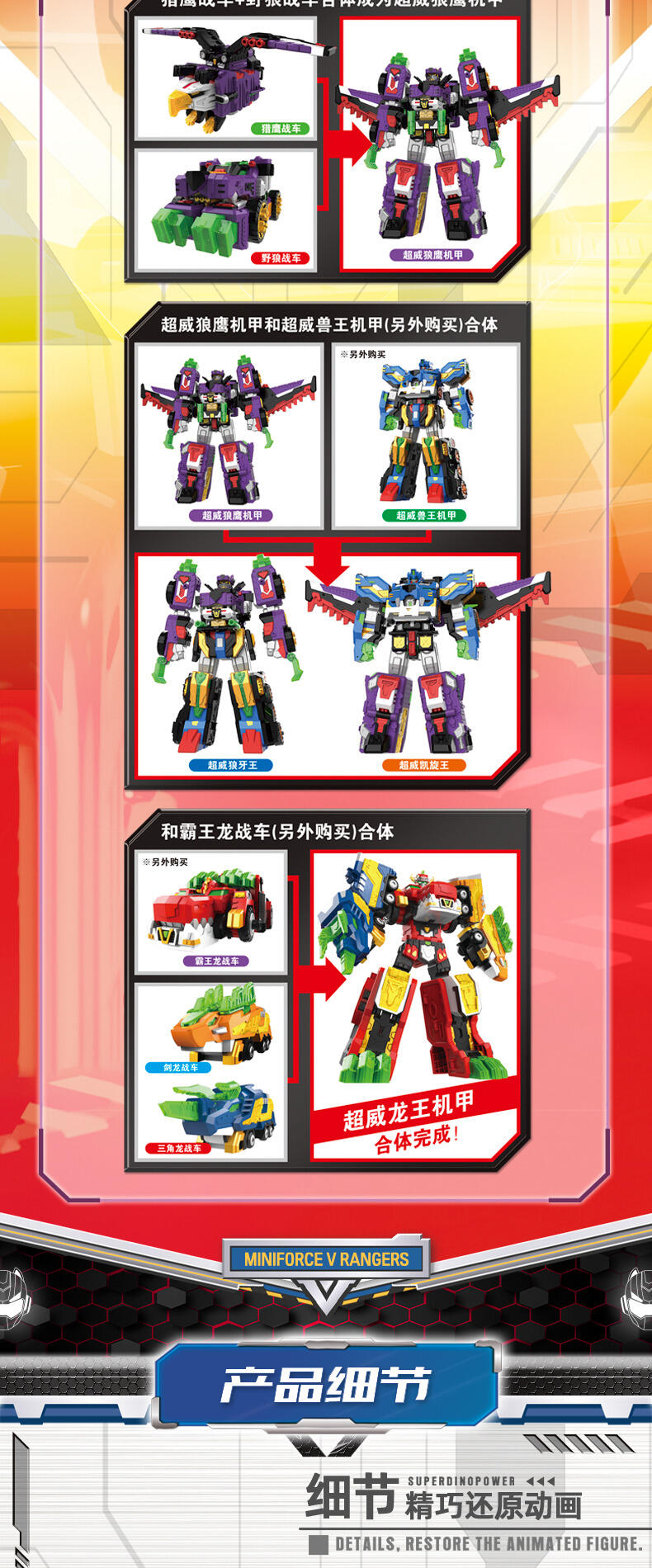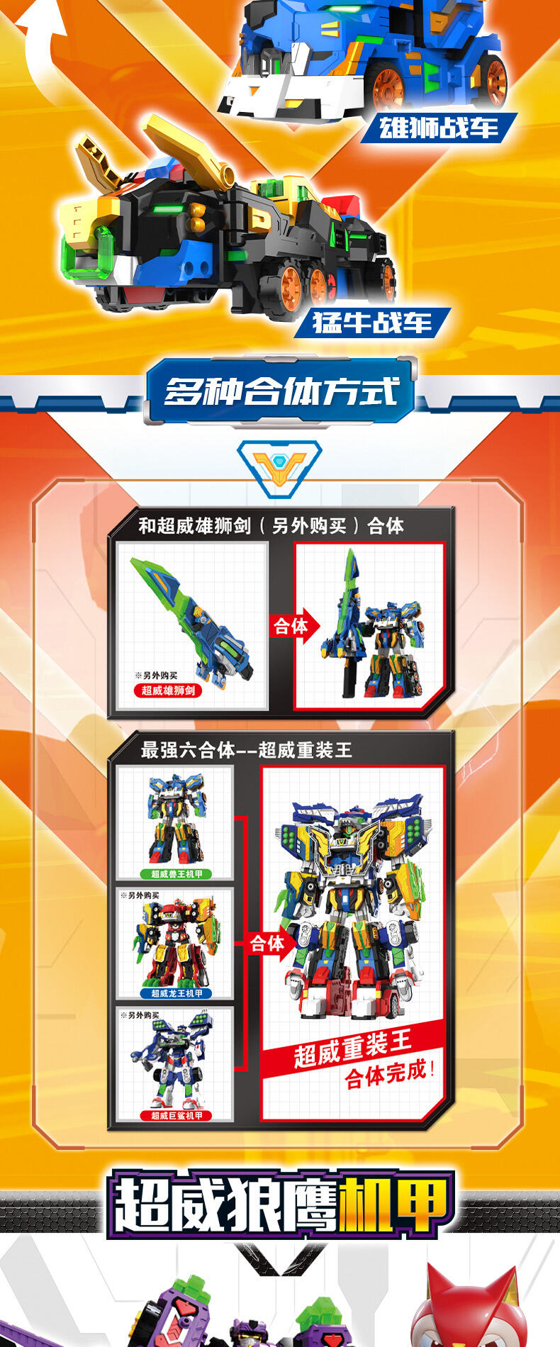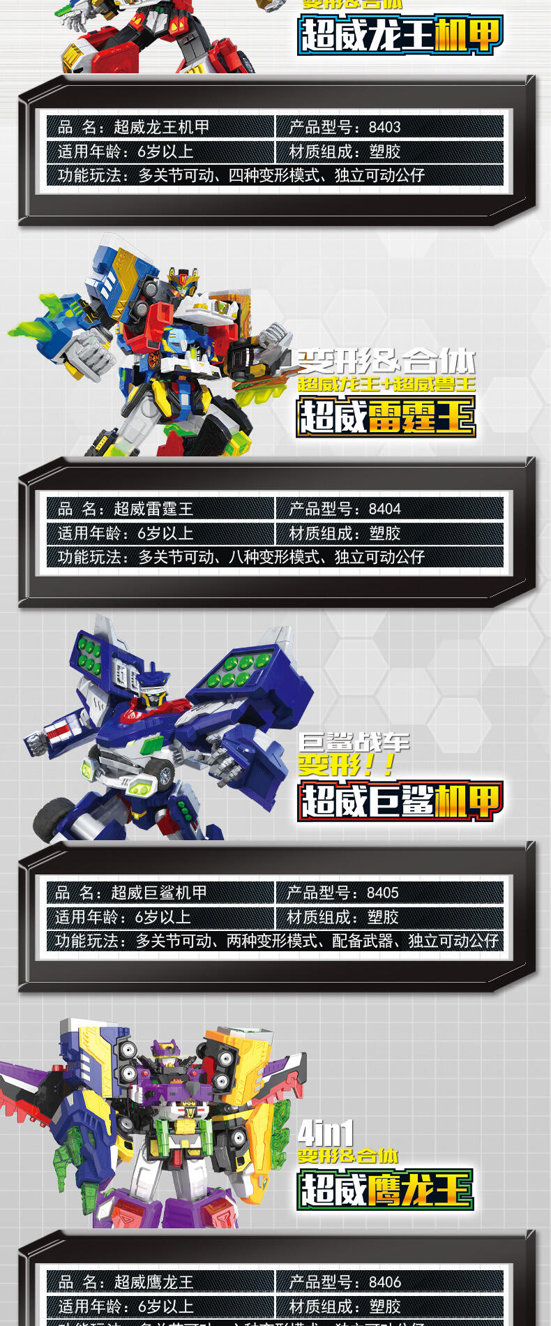 热播动漫同款,共4种模式,三角龙战车+野狼战车+猎鹰战车=可合体超威鹰龙王