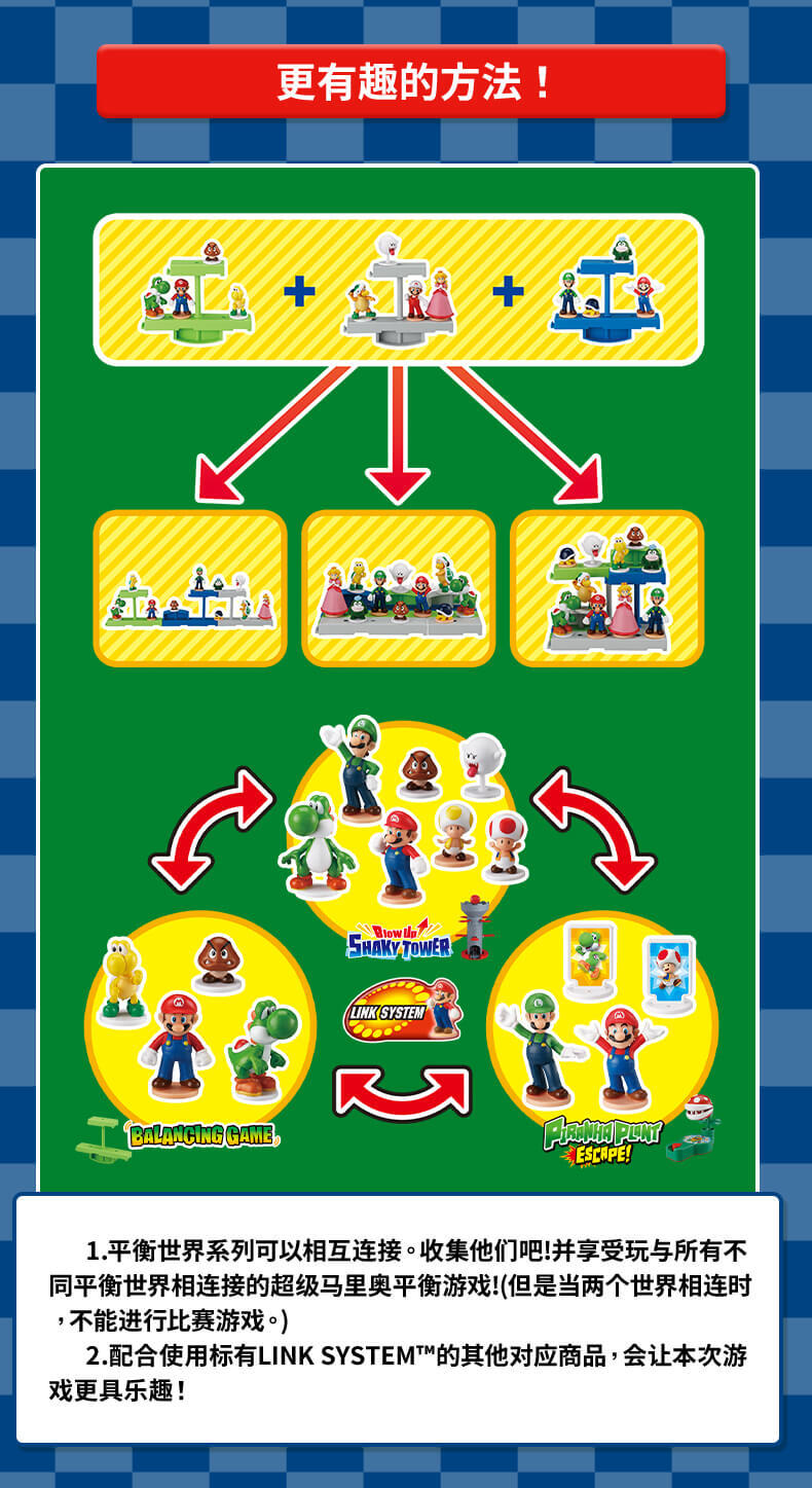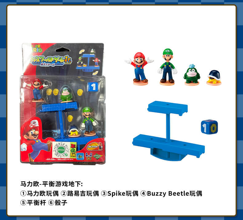 全新超级马里奥的平衡游戏来了!(内含4个玩偶)你能成功的把玩偶放在平衡杆上吗?你也可以将玩偶用作装饰摆件。