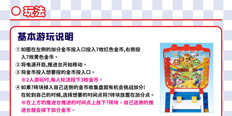 如果使用钓线块的话,硬币就会变大了逃脱的巨大机会的机关,以及通过电动驱动的正统滑动台,让游戏变得更加有趣。