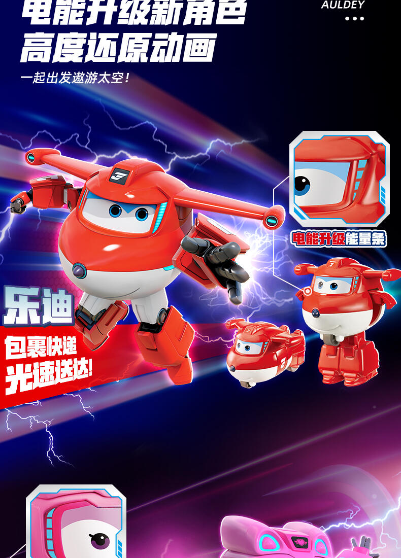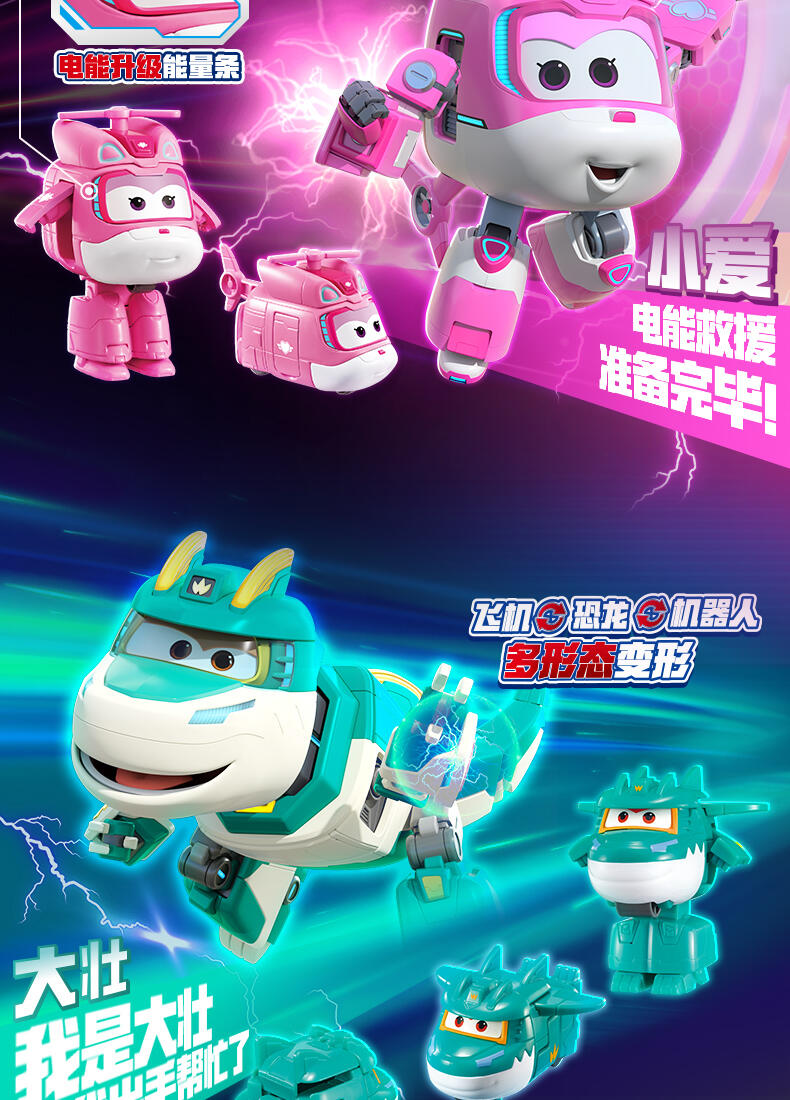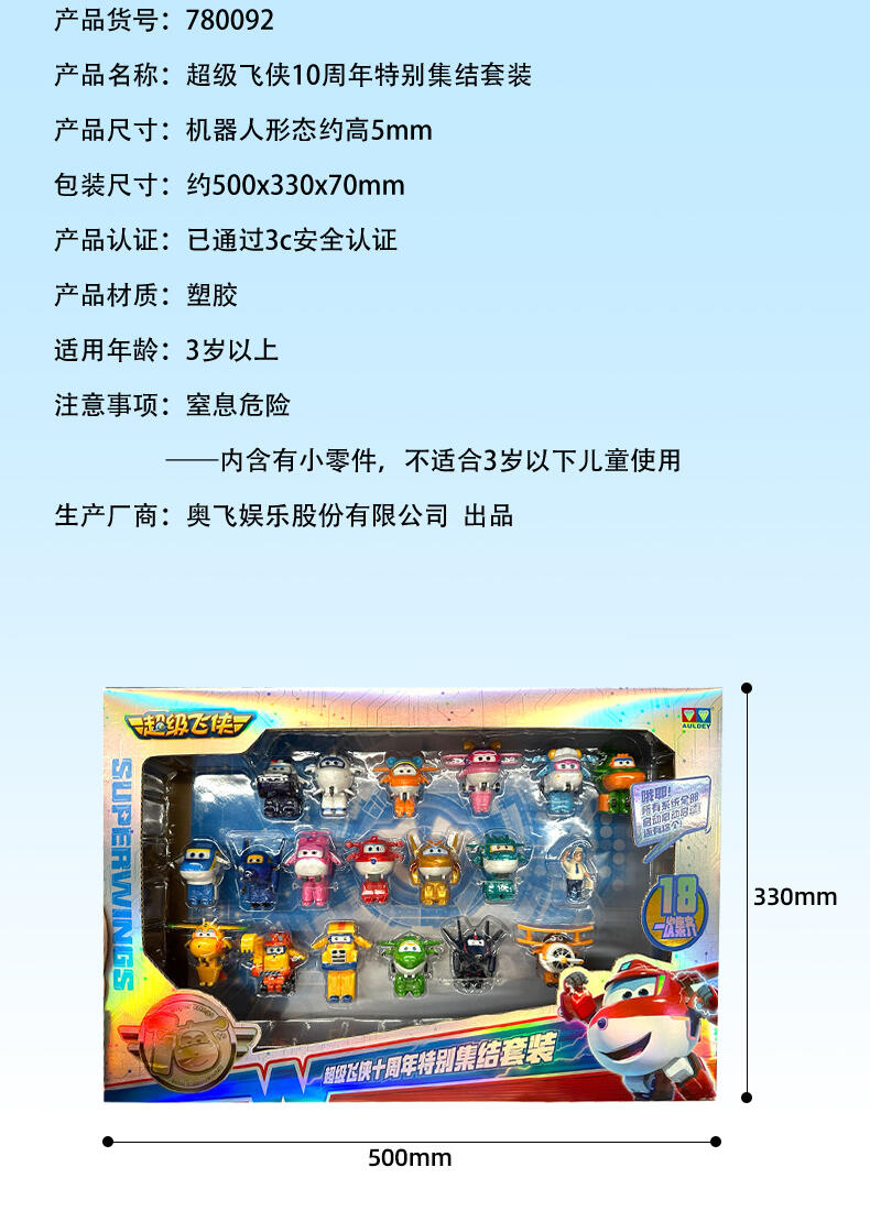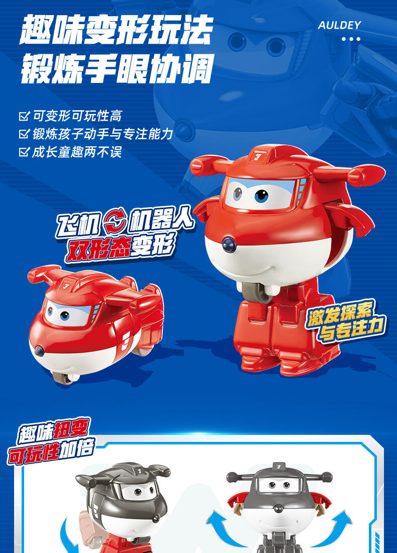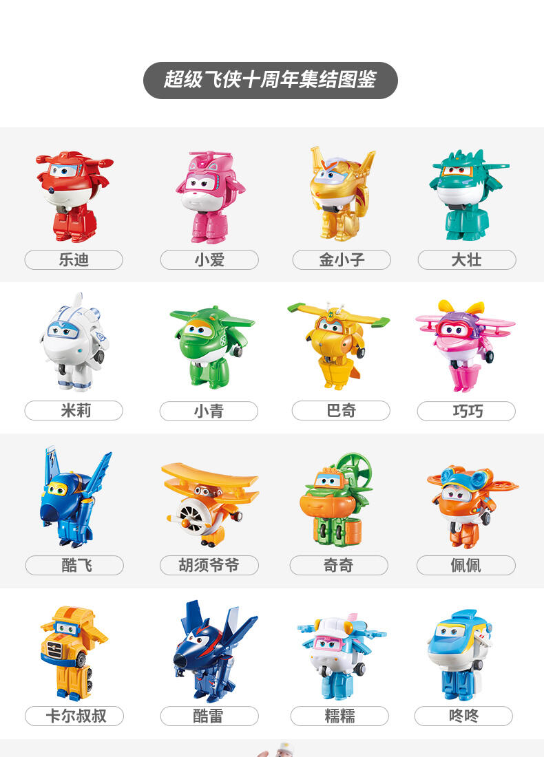 1、还原超级飞侠所有角色的迷你变形机器人他套装 2、一次性收集齐全18个超级飞侠角色小变形+金宝角色搪胶