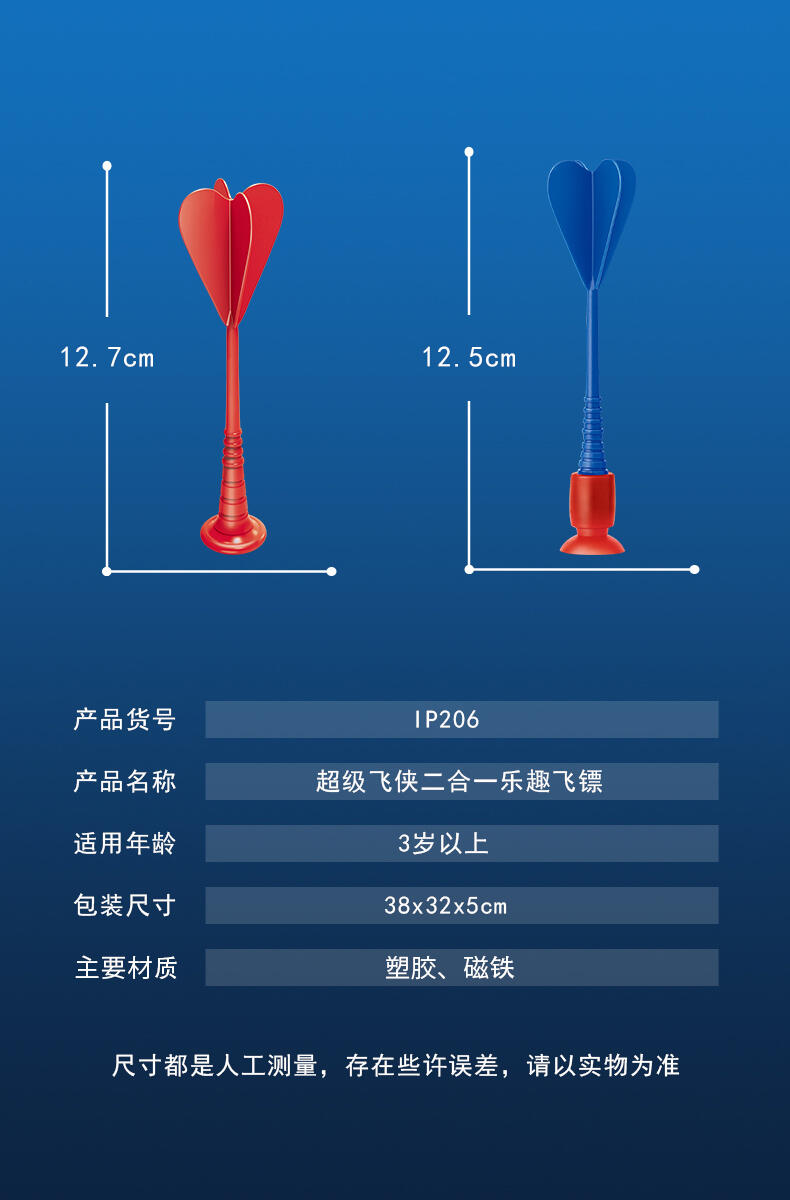 镭射靶盘,两种镖针两种玩法,吸盘式及强磁飞镖。吸盘飞标还可以吸附在任何光滑的物体上面。