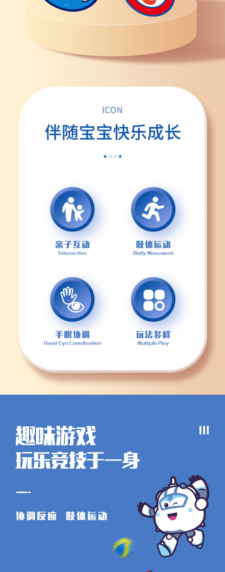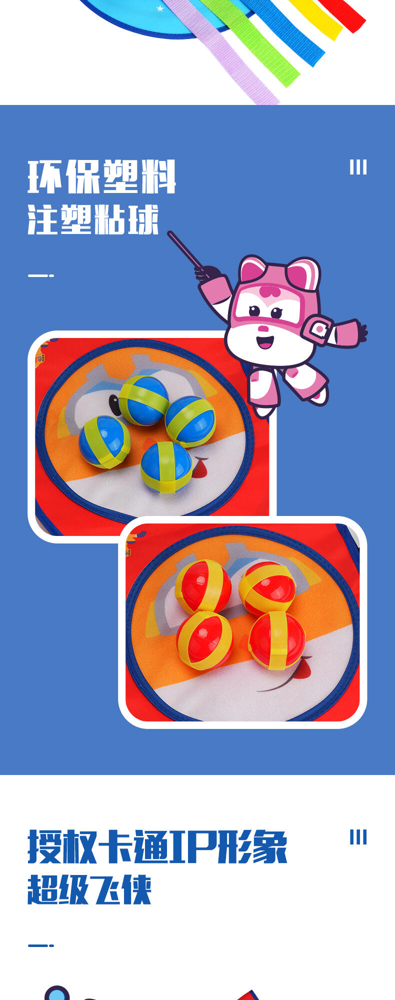 用手把球投掷到靶盘上玩耍。经典超级飞侠IP形象。