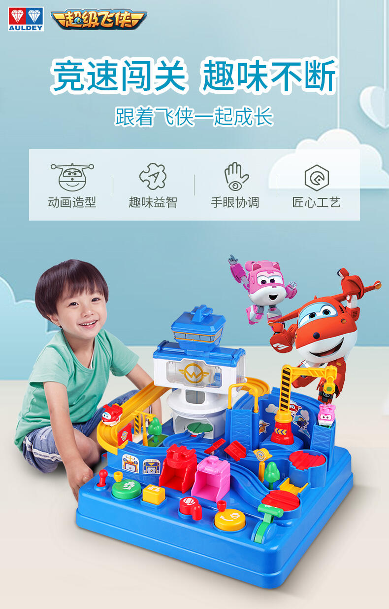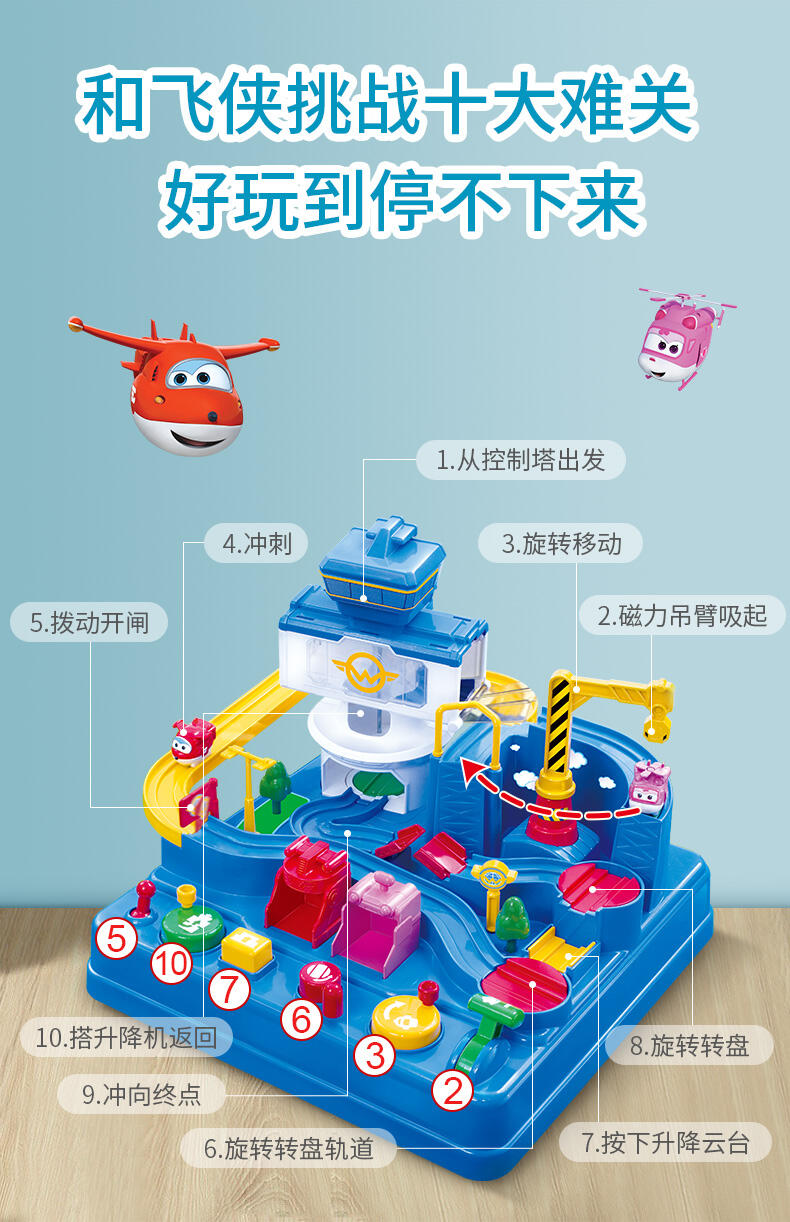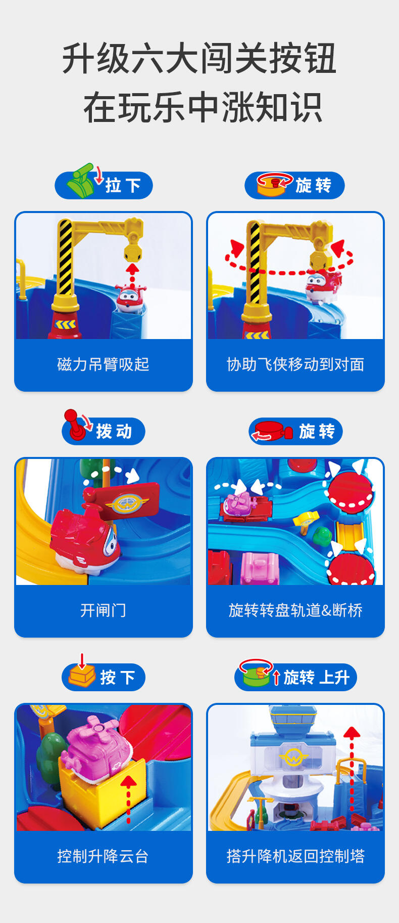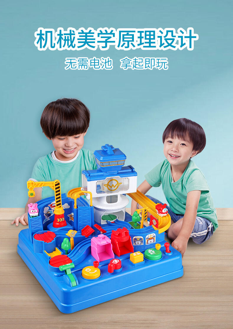 1、重力机械轨道车玩具,主体造型为超级飞侠国际机场,高度还原动画。