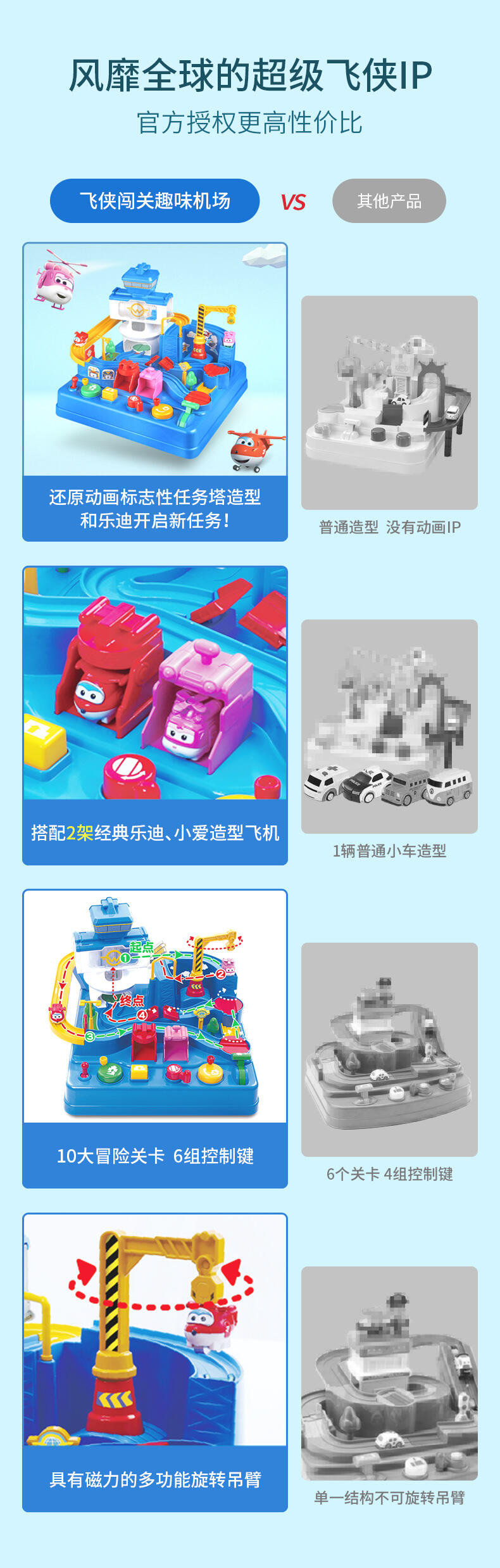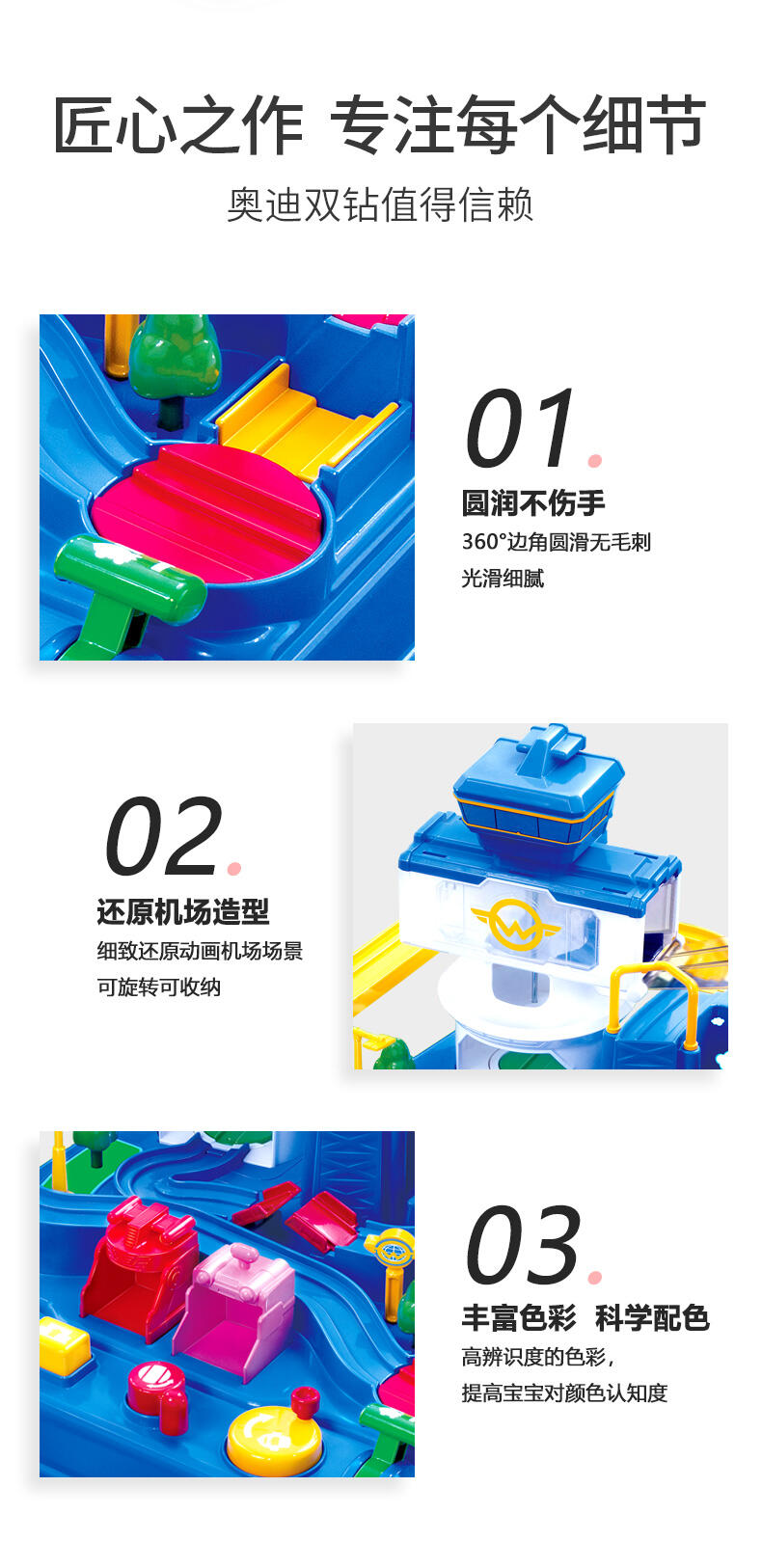 3、附赠2只滑行小飞机(乐迪、小爱),顺畅滑行,畅通无阻