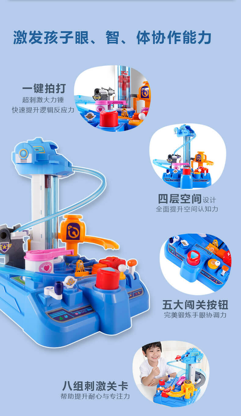 2. 5大闯关按钮,8组刺激关卡,锻炼小朋友专注力及手眼协调能力;