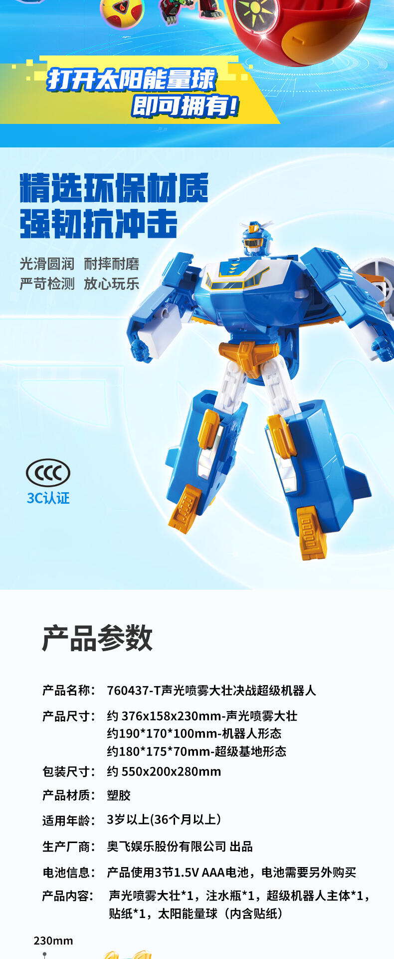 Super Wings超级飞侠 声光喷雾大壮决战超级机器人