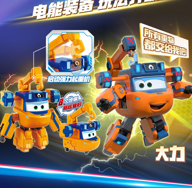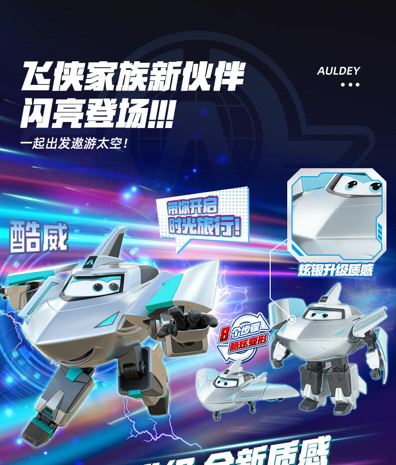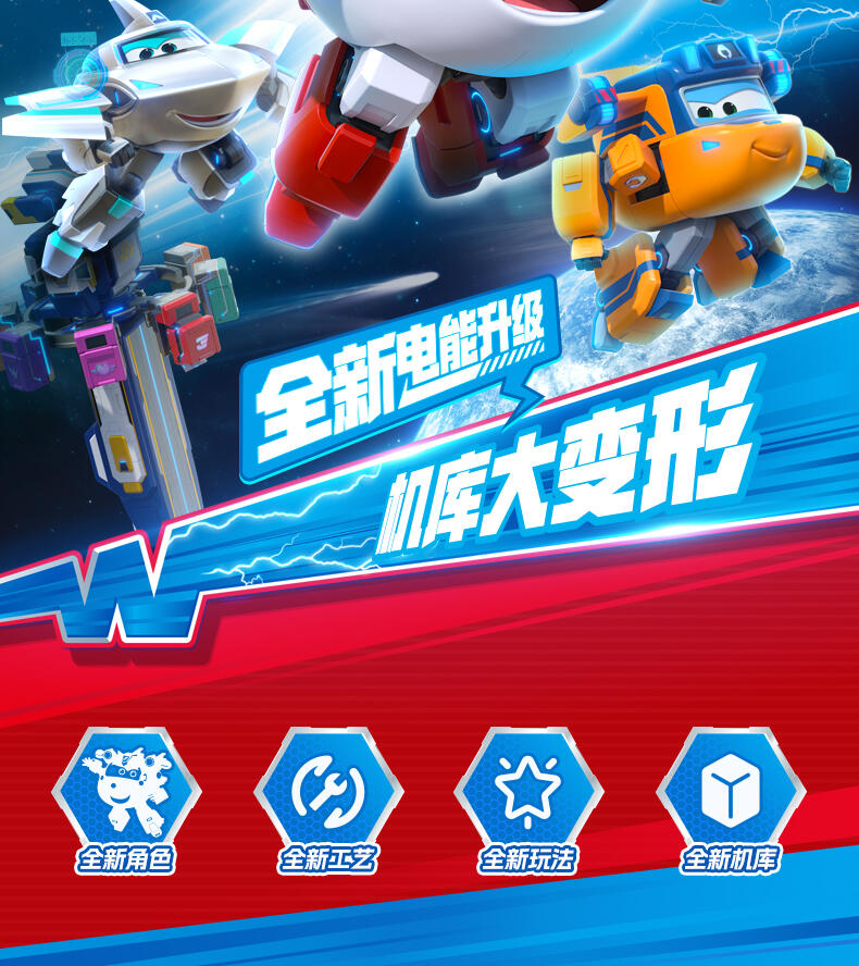 1、全新飞侠成员。2、附带盾牌可前后旋转。 3、采用蓝色全新机库墙,突出电能感觉。4、八部变形,体验更顺畅,造型更还原