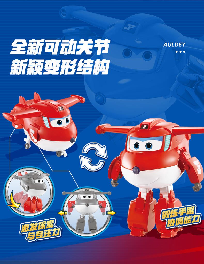1、全新飞侠成员。2、全新金属质感外表。 3、采用蓝色全新机库墙,突出电能感觉。 4、独一无二变形方式,造型还原