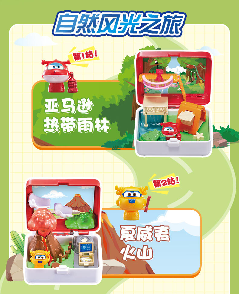 还原动画片地理知识科普,跟着飞侠认识世界 6款超人气主角飞侠人偶都可变形,最具飞侠包裹特征的盲盒外型 一键开盒弹起惊喜地标、最多5处机关,高达14个配件,培养想象力与动手能力