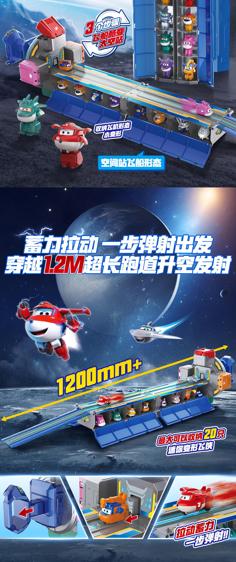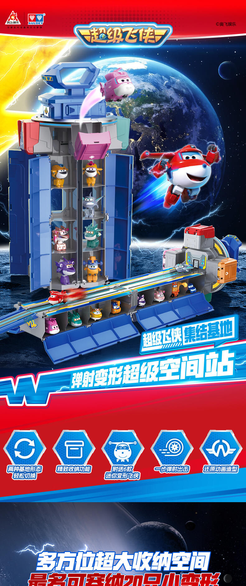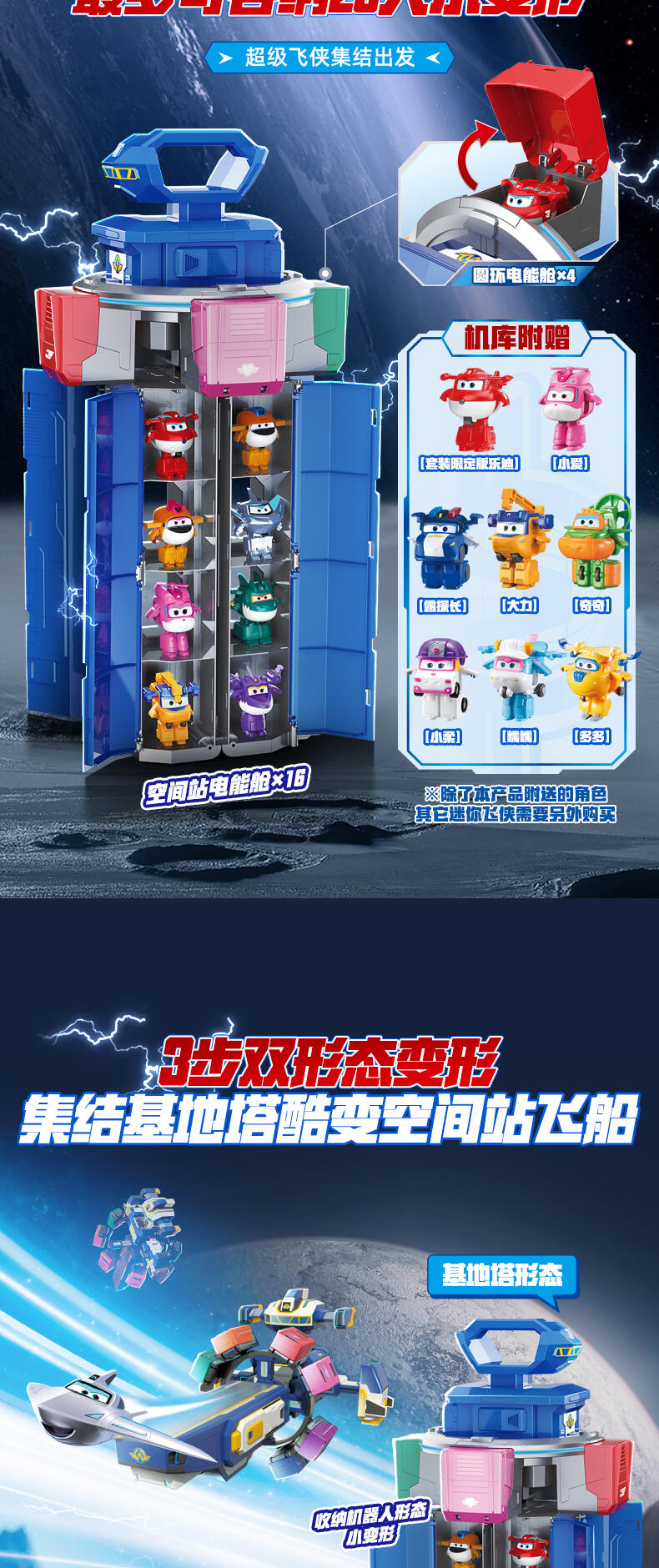 超级飞侠集结基地,可容纳20只超级飞侠。3个步骤,飞船酷变天空站。