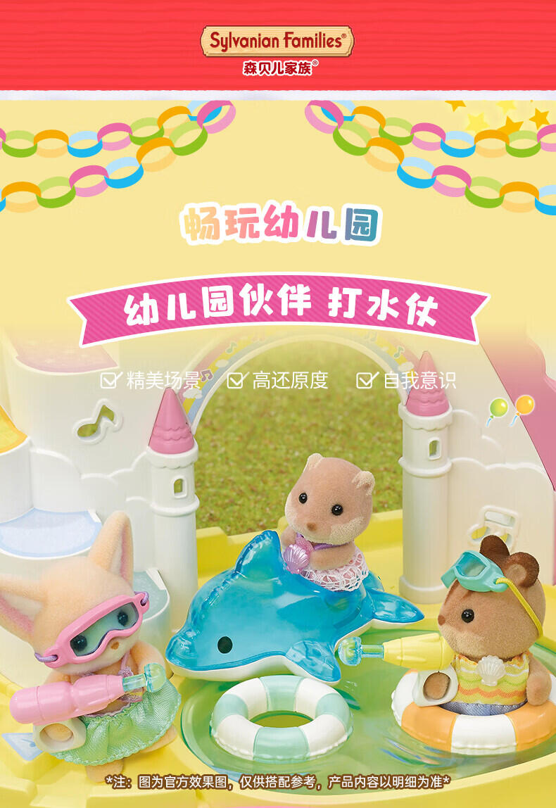 托儿所朋友泳池趣味三重奏套装是任何托儿所游戏套装的完美补充!包含三个婴儿:狐狸尤利,胡桃松鼠安布罗斯,水獭尼古拉。充气海豚和游泳池玩具在游泳池里提供了很多乐趣。襁褓中的婴儿可以乘坐充气海豚。婴儿们穿着波浪图案和贝壳纽扣的可爱游泳服。孩子们可以拿着游泳池玩具,戴上护目镜。西尔瓦尼亚家庭生活在西尔瓦尼亚田园诗般的世界里,鼓励传统的家庭生活游戏,将房屋、家具、配件和令人难忘的人物融入其中,所有这些都有令人难以置信的细节,你会喜欢。年龄:3岁+