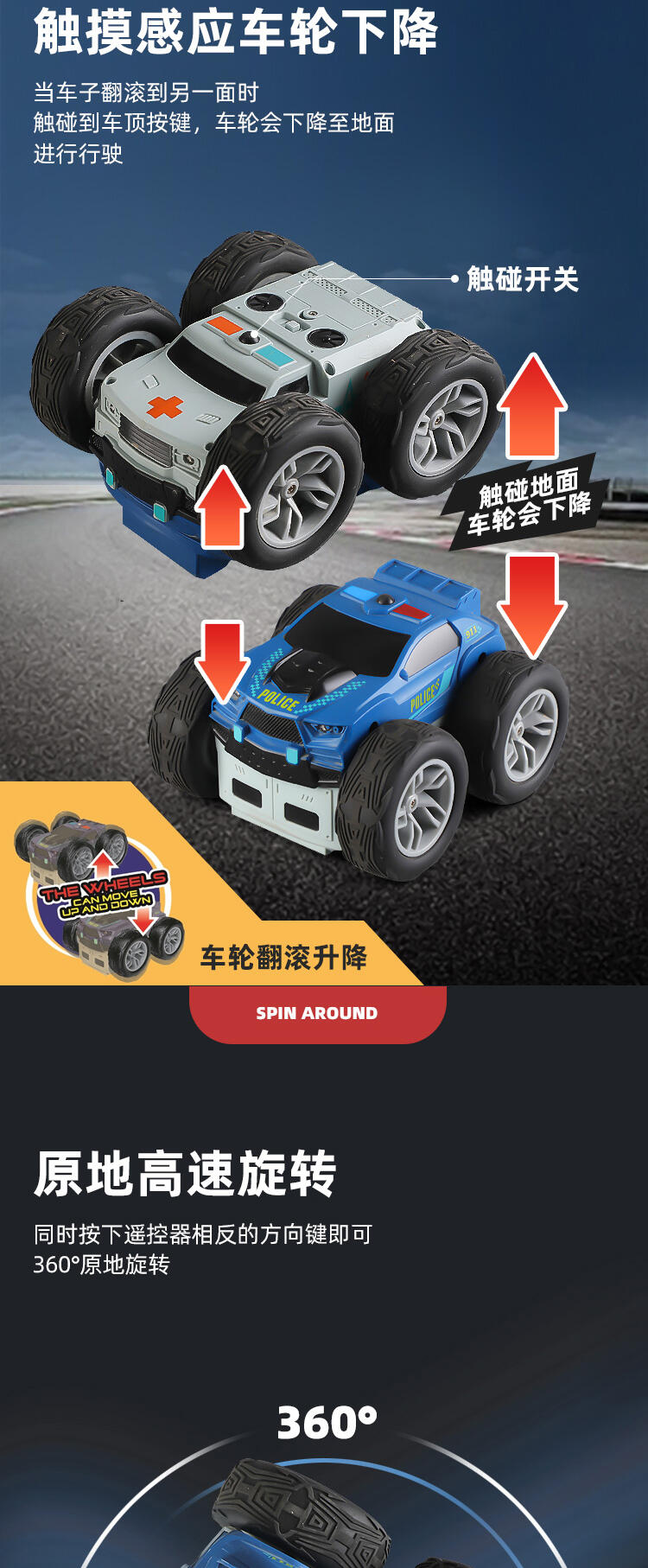 6、特技自动升降,双面皆可行驶