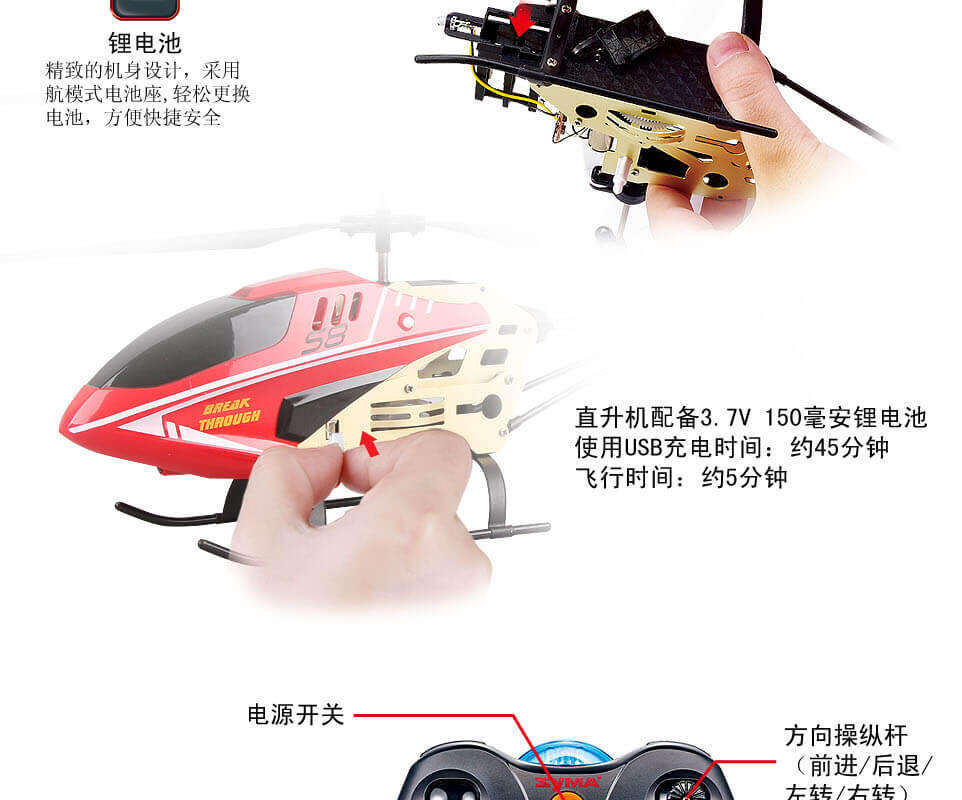 3.5通道直升飞机,体长22CM,内置陀螺仪。