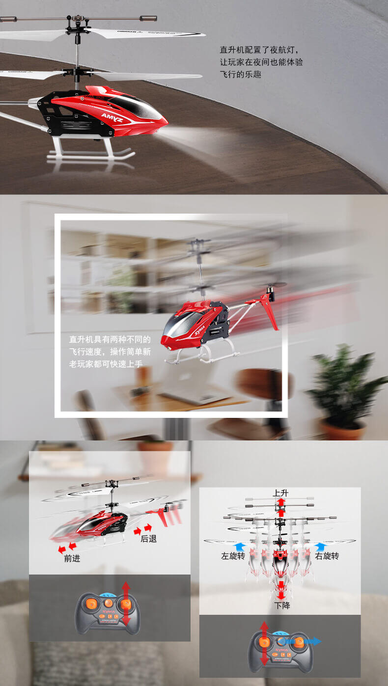 适合室内飞行,具有上升/下降/前进/后退/左右转等全比例操作功能。 本产品经过精心设计,优质材料制成,用心打磨细节,边缘光滑,制作精良。适合小朋友玩耍,也可以与其他小朋友一起分享,和父母同玩,促进亲子关系发展