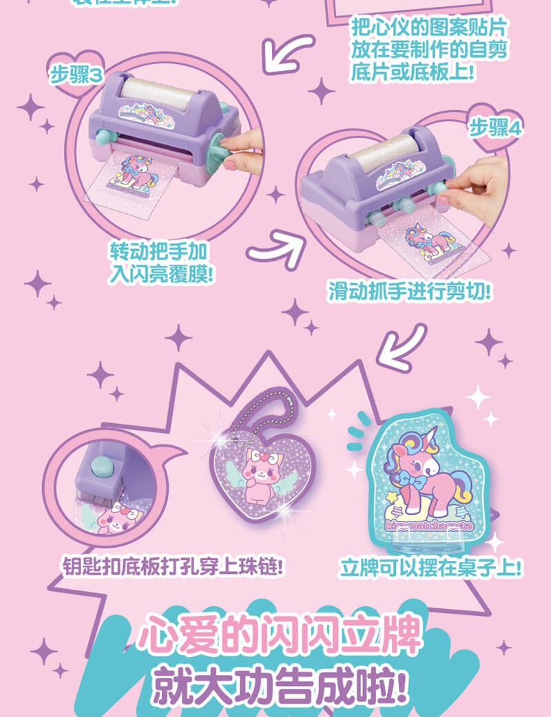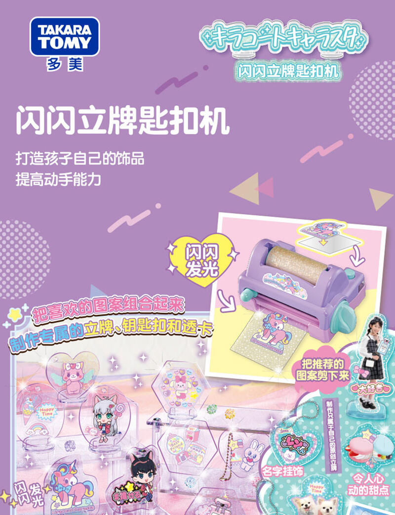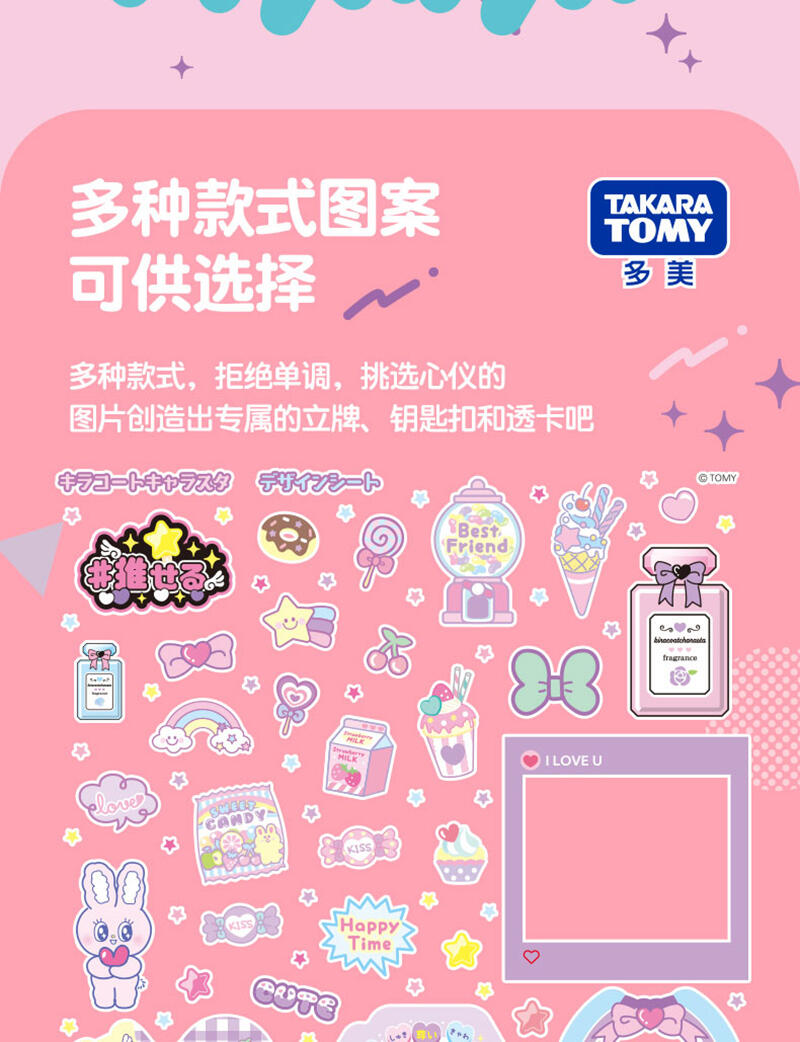 制作只属于自己的kira 闪闪立牌匙扣.在想做的自由座椅和板子上。放上喜欢的设计座椅,设置在本体上。果转动实体的方向盘,闪闪发光被层压了的座席的完成!用剪刀剪成喜欢的形状放在看台上的话,闪闪发光的立牌匙扣就完成了.板子开了个洞,附属的球链可以通过哦。带在包和包里携带!除了附带的设计表以外,还可以使用喜欢的照片等制作原创的kira立牌匙扣.
