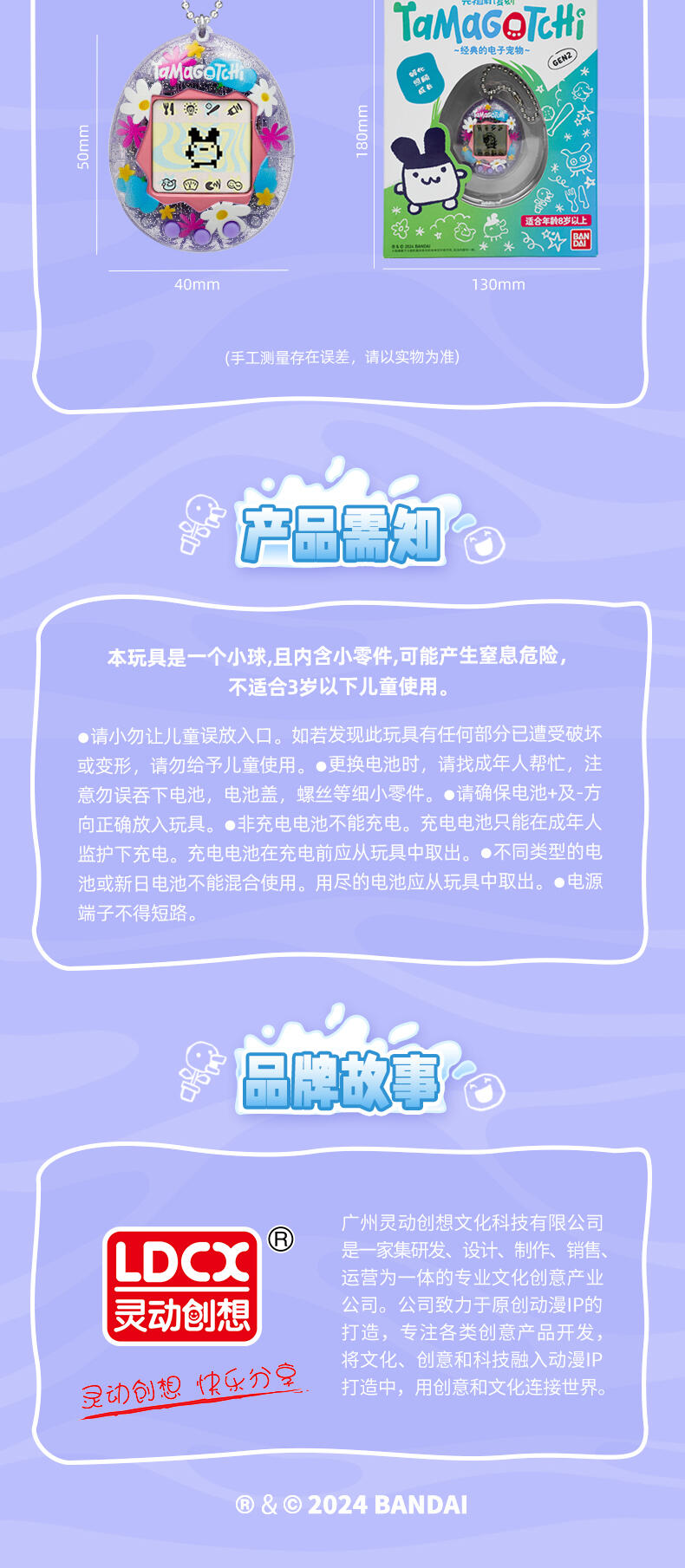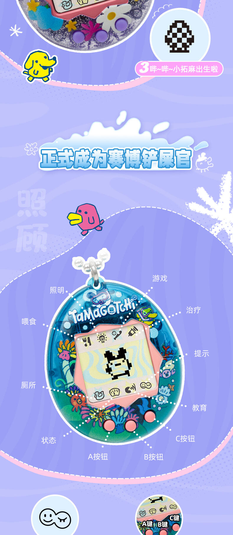 1、童年时代风靡全球的电子宠物机,初代经典元祖复刻系列,激起怀旧情怀,自带话题流量。2、全新潮流设计,小巧精致又有极大DIY空间,可作为流行穿搭配饰,已成为最潮时尚单品。3、玩法轻松有趣,利用碎片化时间即可体验养成乐趣,孵化个性独特的电子宠物更具情感价值。4、独家设计+全球首发,兼具复古与潮流,极具收藏价值。"