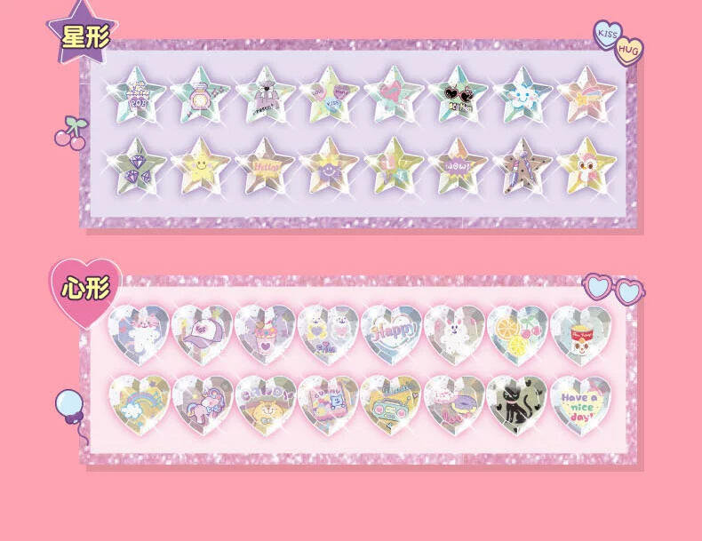 4/ 产品包含48颗不同图案的立体贴纸,每个形状有16种图案!