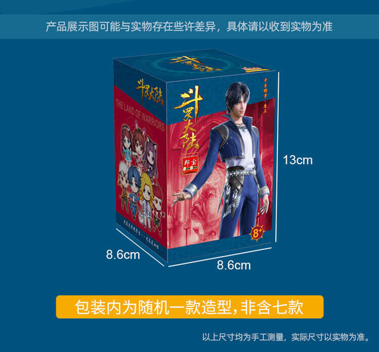 该产品紧贴斗罗大陆热门动漫主题,国内顶尖IP授权产品,还原动画片的人物,采取盲盒模式,增加可玩性和有趣性;