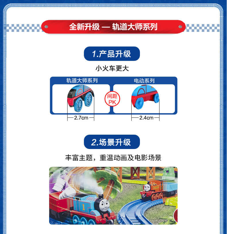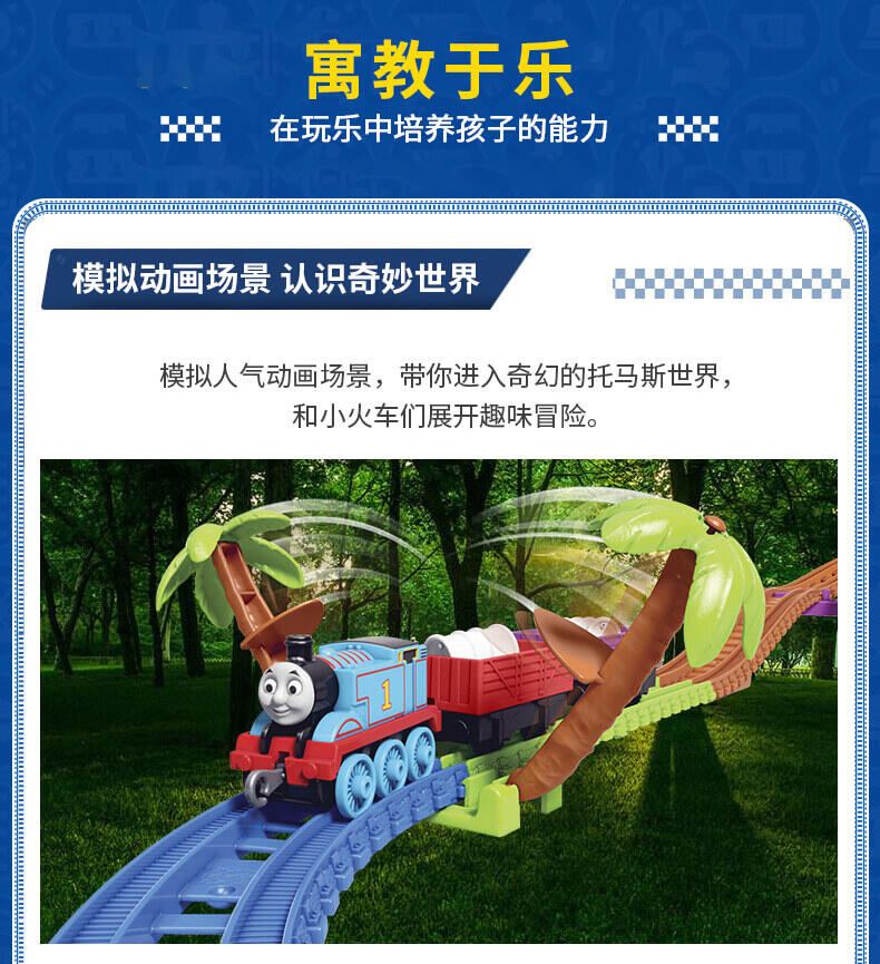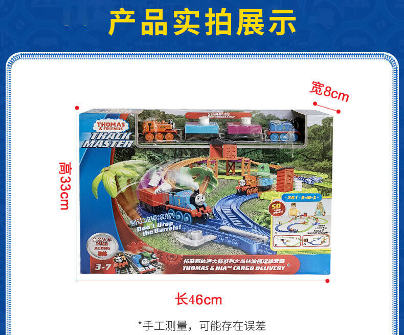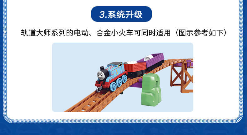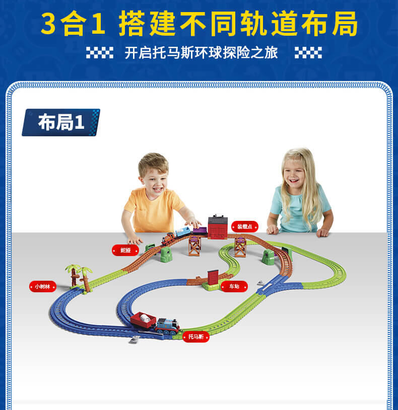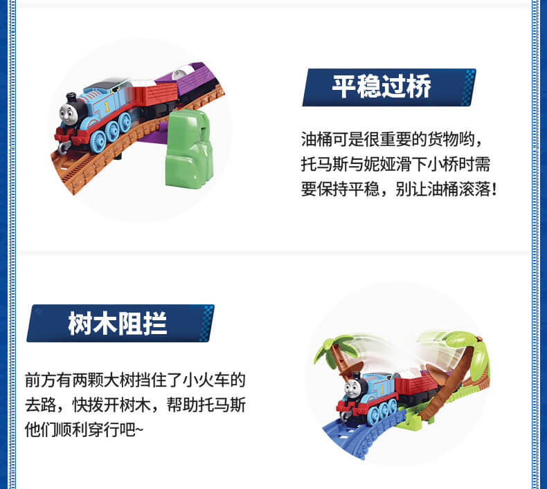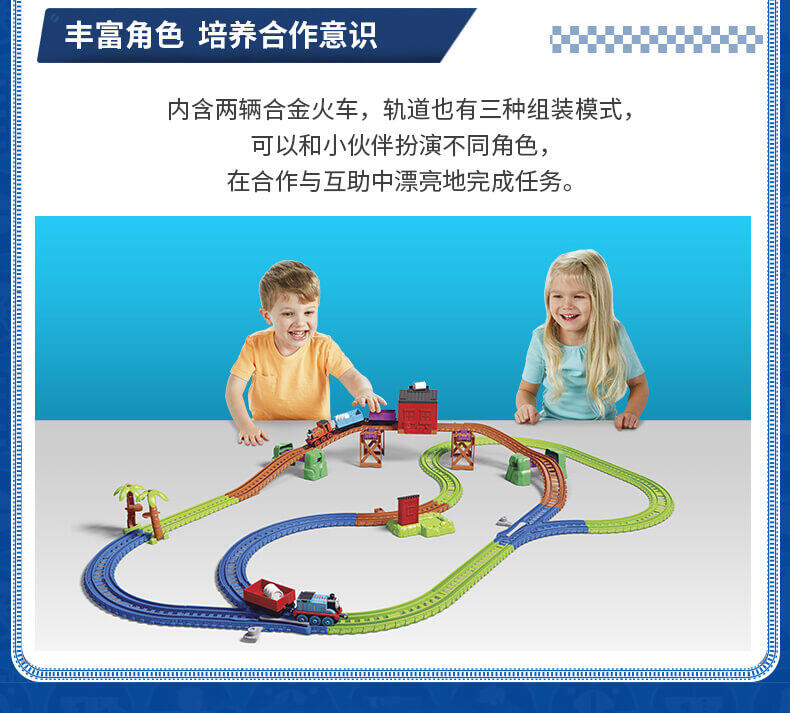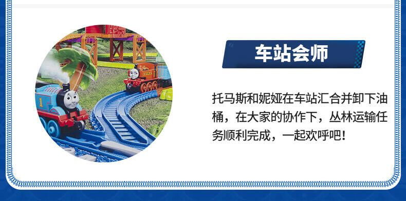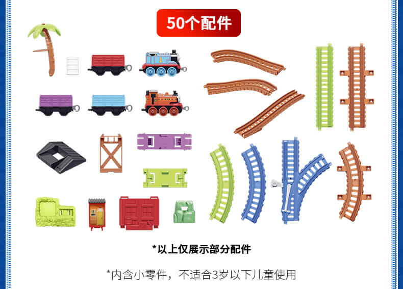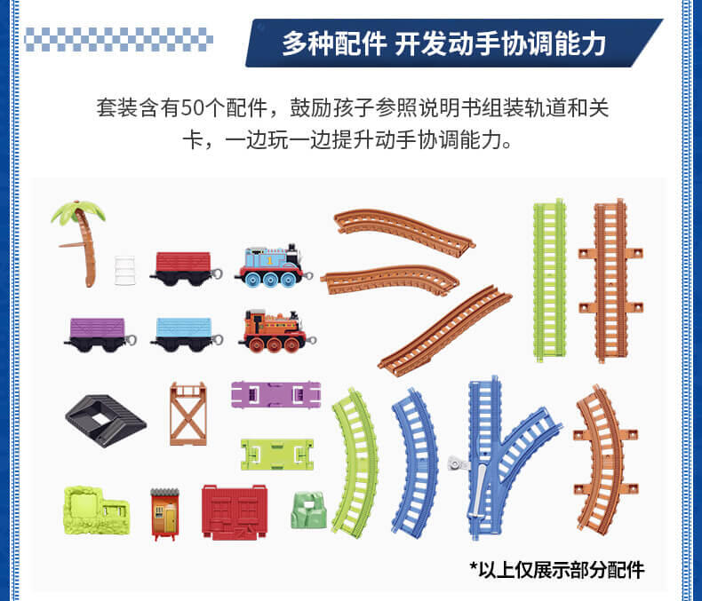 模拟人气动画场景,带你进入奇幻的托马斯世界,和小火车们展开趣味冒险,套装含50个配件,鼓励孩子参照说明书组装轨道和关卡,一边玩一边提升动手协调能力。