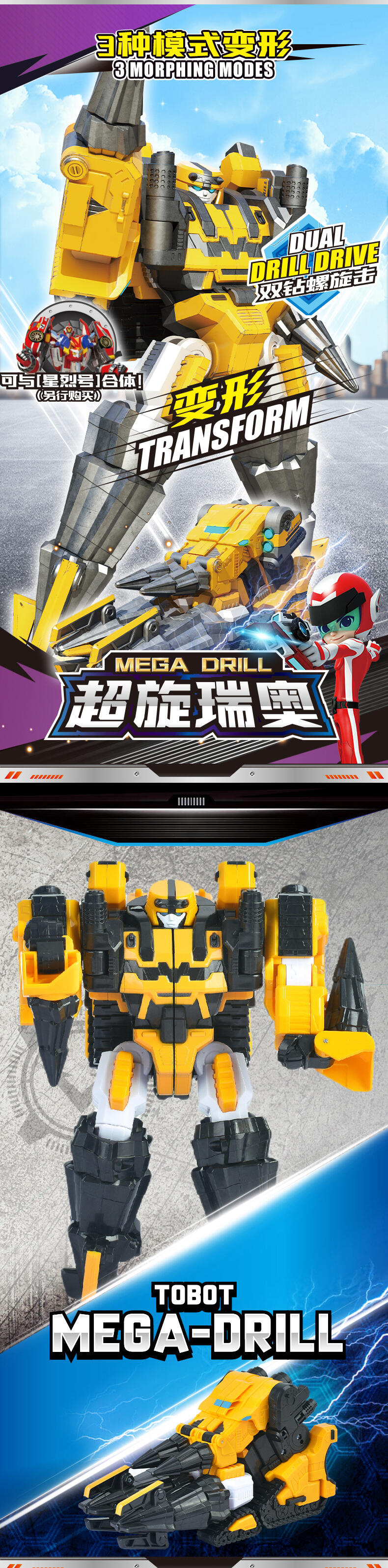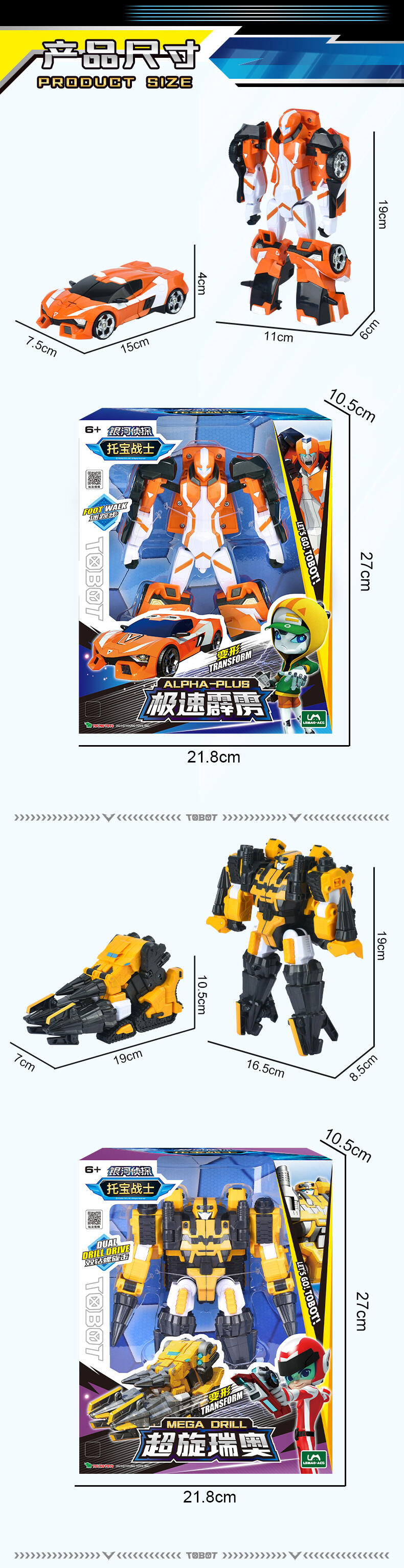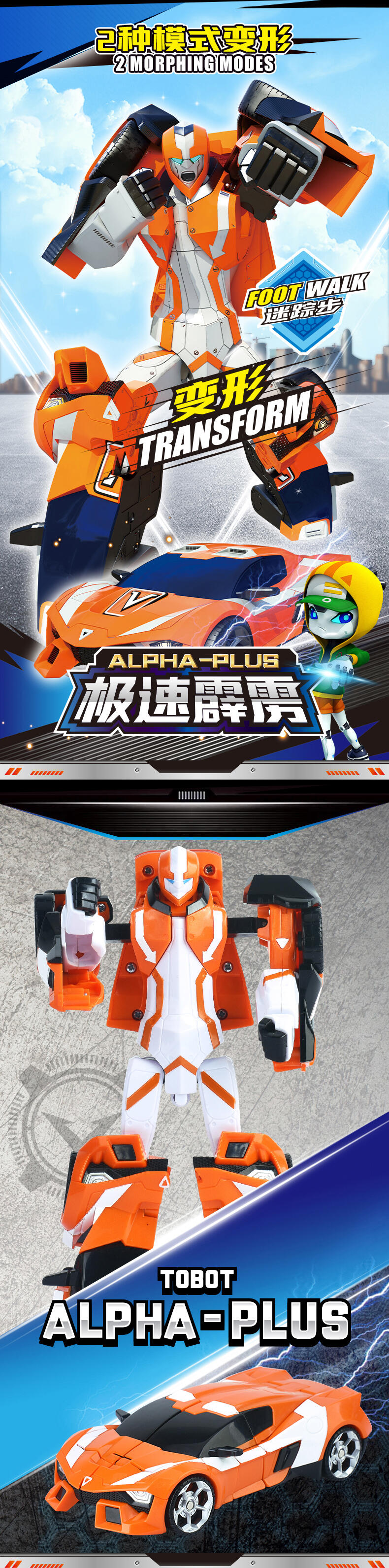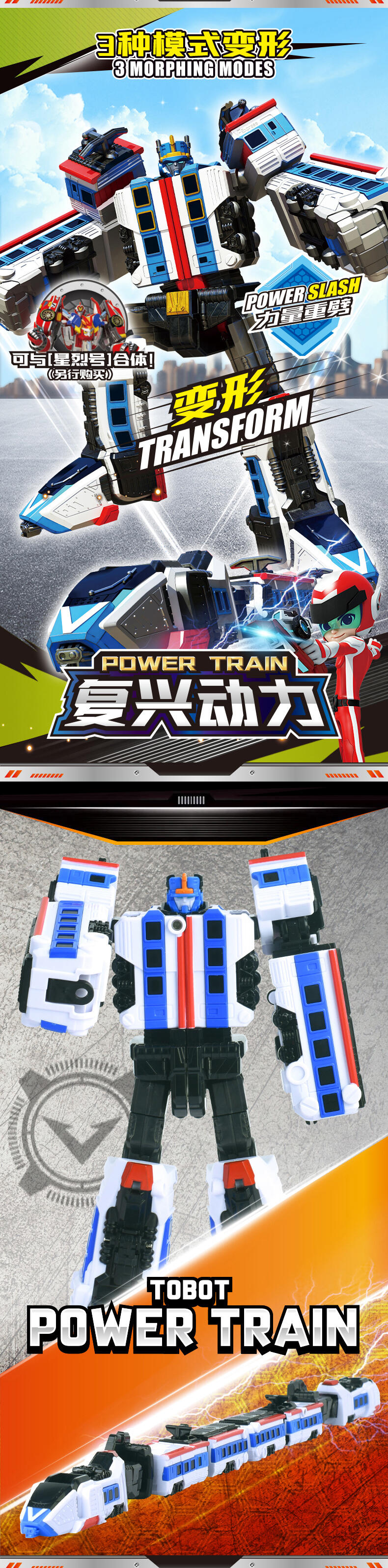 《Tobot托宝战士》热播动画同款玩具,2种(火车+复兴动力机甲)变形模式,它有着强大的双臂力量,将轨道上的V-能量转化成月牙形发出。