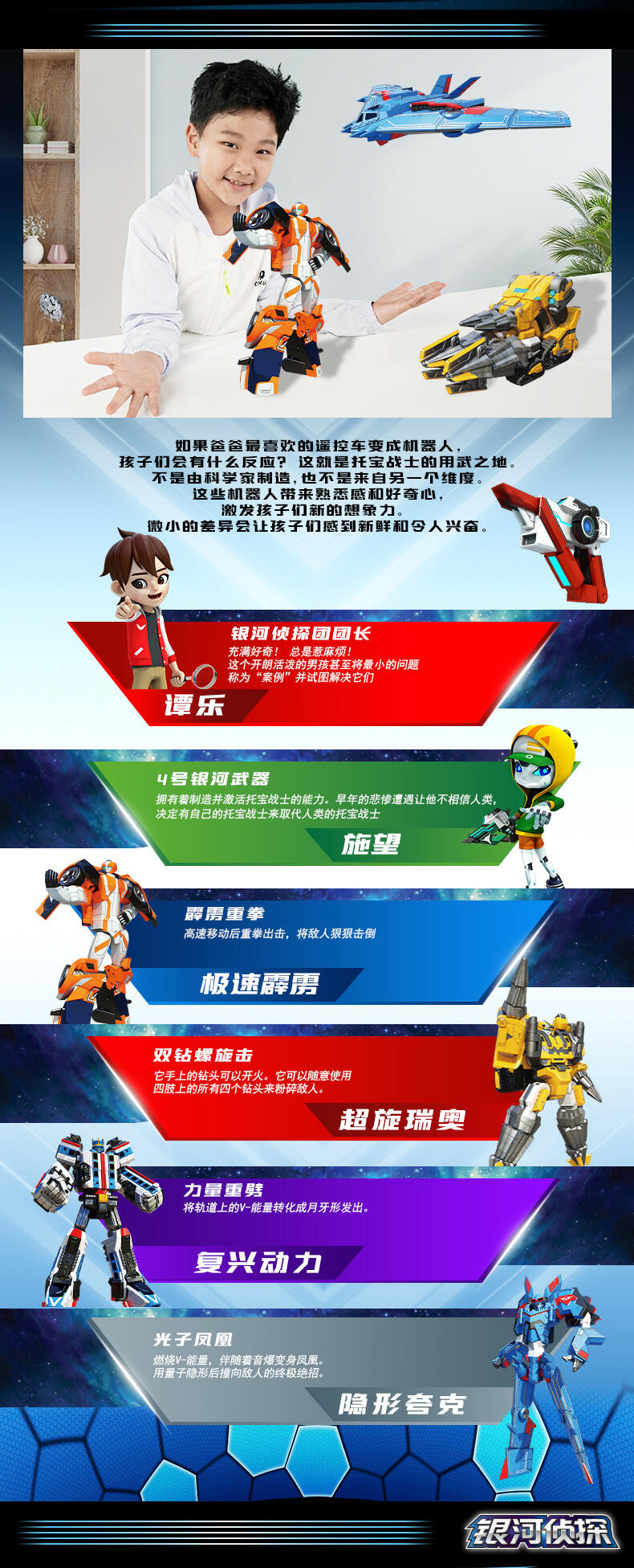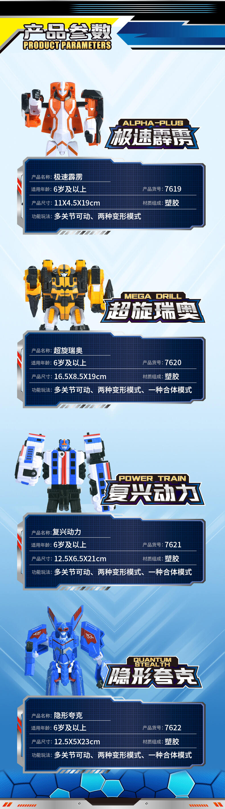《Tobot托宝战士》热播动画同款玩具,2种(大力钻地机+螺旋机甲)变形模式,它手上的钻头可以开火,它可以随意使用四肢上的钻头来粉碎敌人。