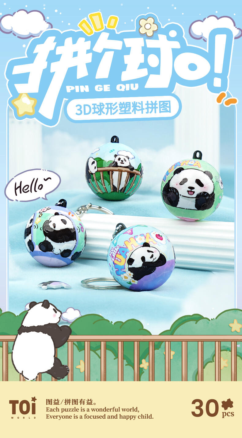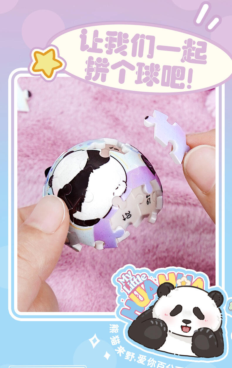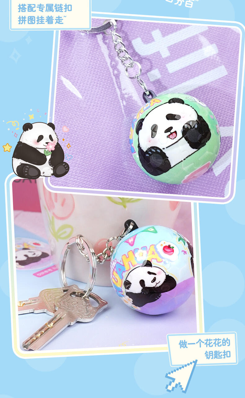 熊猫球形拼图钥匙扣,结构牢固不易散。专属拼片号码,按顺序,按方向拼接,轻松完成。搭配金属扣链,可以挂在包包上。