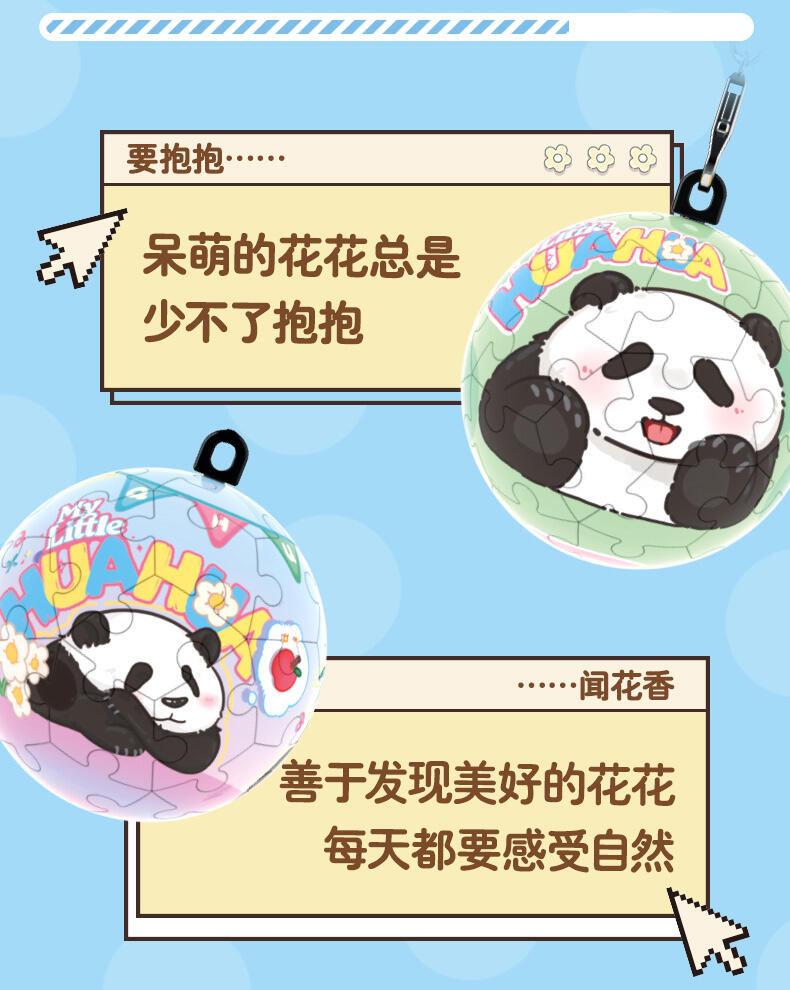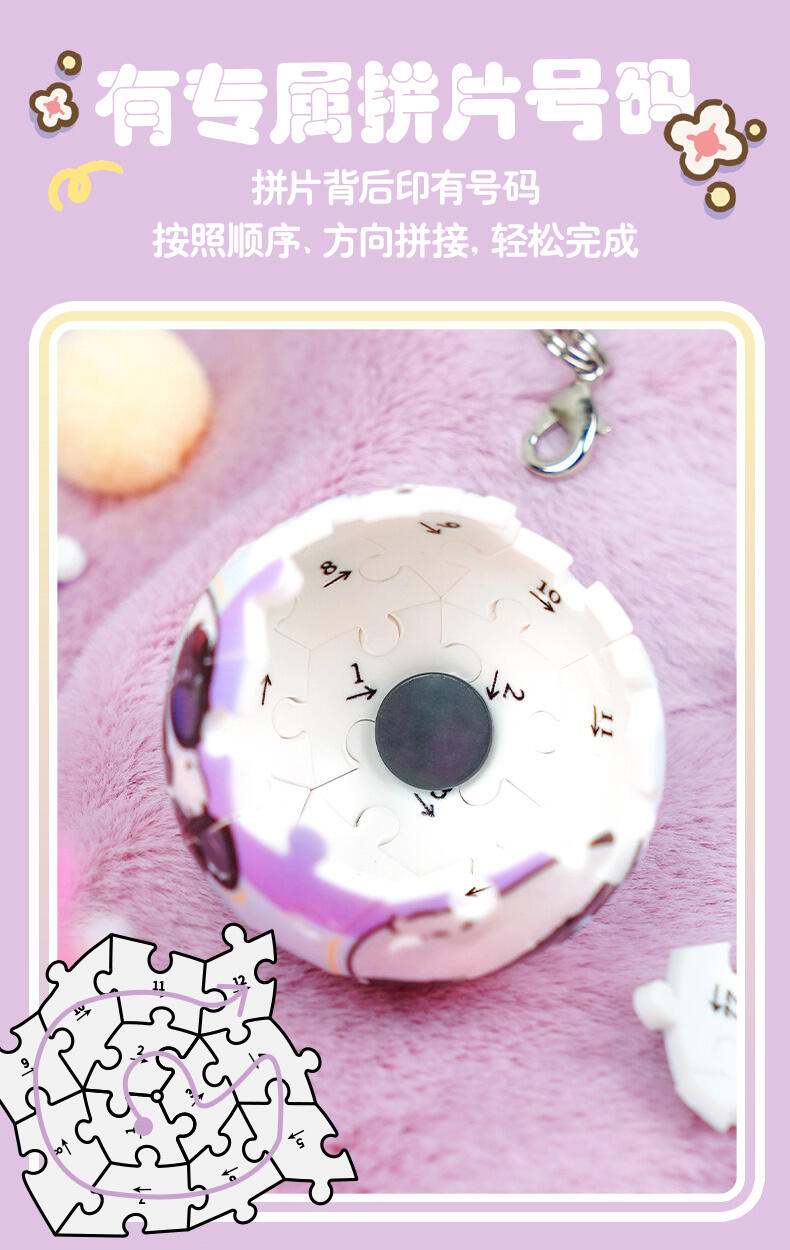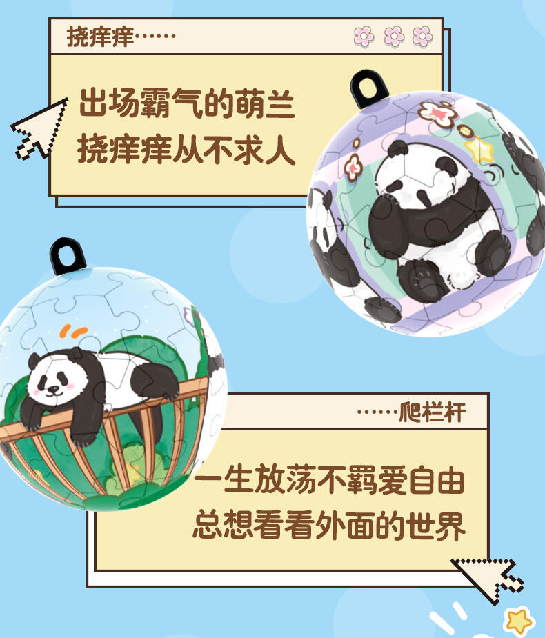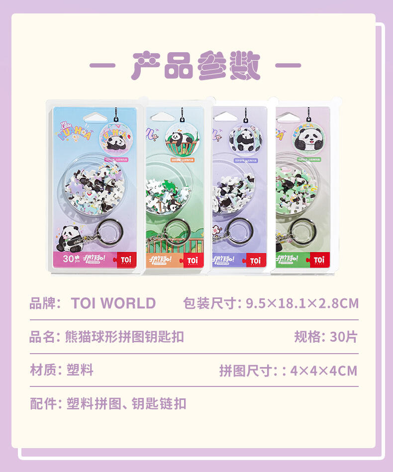 熊猫球形拼图钥匙扣,结构牢固不易散。专属拼片号码,按顺序,按方向拼接,轻松完成。搭配金属扣链,可以挂在包包上。