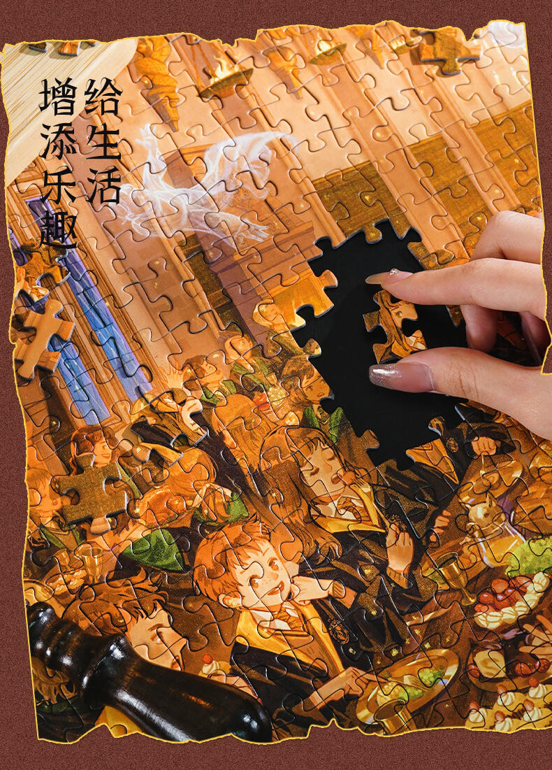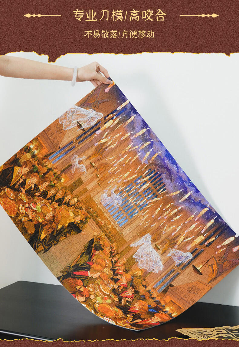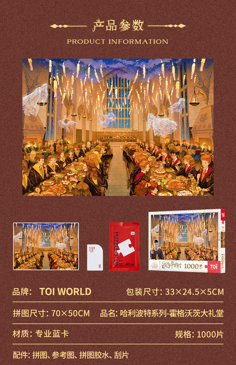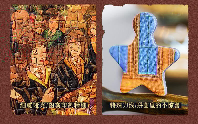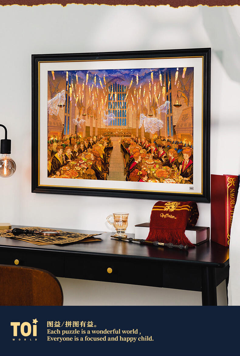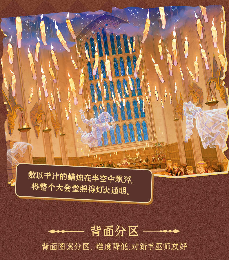 再现霍格沃茨大礼堂的经典场景,背面图案分区,难度降低,对新手巫师友好。边角打磨光滑,拼图体验更优。