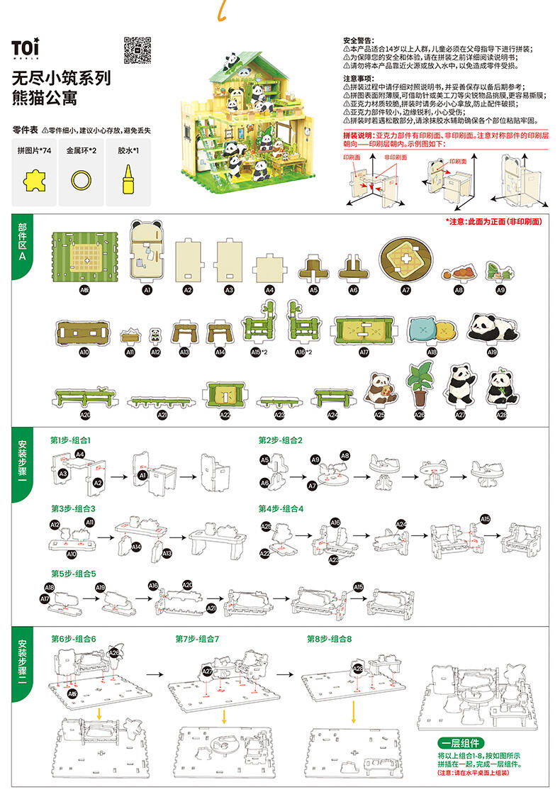 和明星熊猫做邻居,74PCS,DIY拼搭。