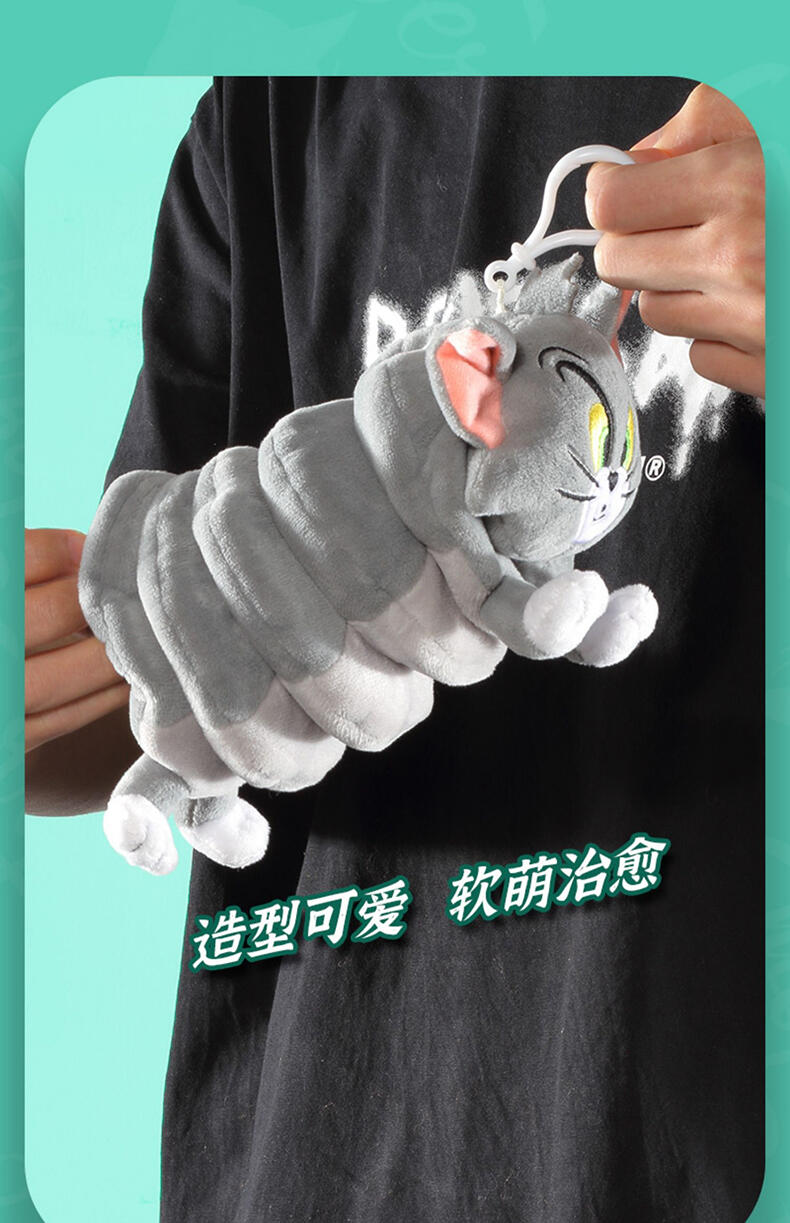 像弹簧一样的形状,愤怒的表情,这一定是跟相爱相杀的杰利鼠在打闹了。四只小脚丫。可爱又有趣。结合金属扣挂在包包上或者钥匙上。守护在你身边