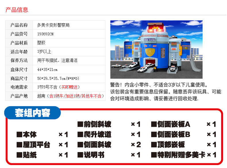 多美卡变形警察局(内含1辆小车,其他需另购)