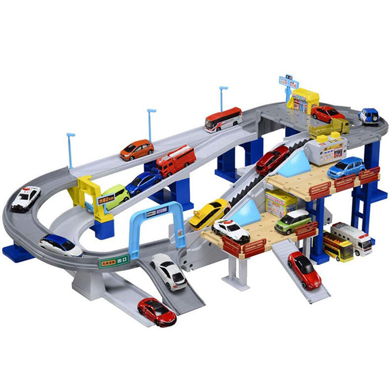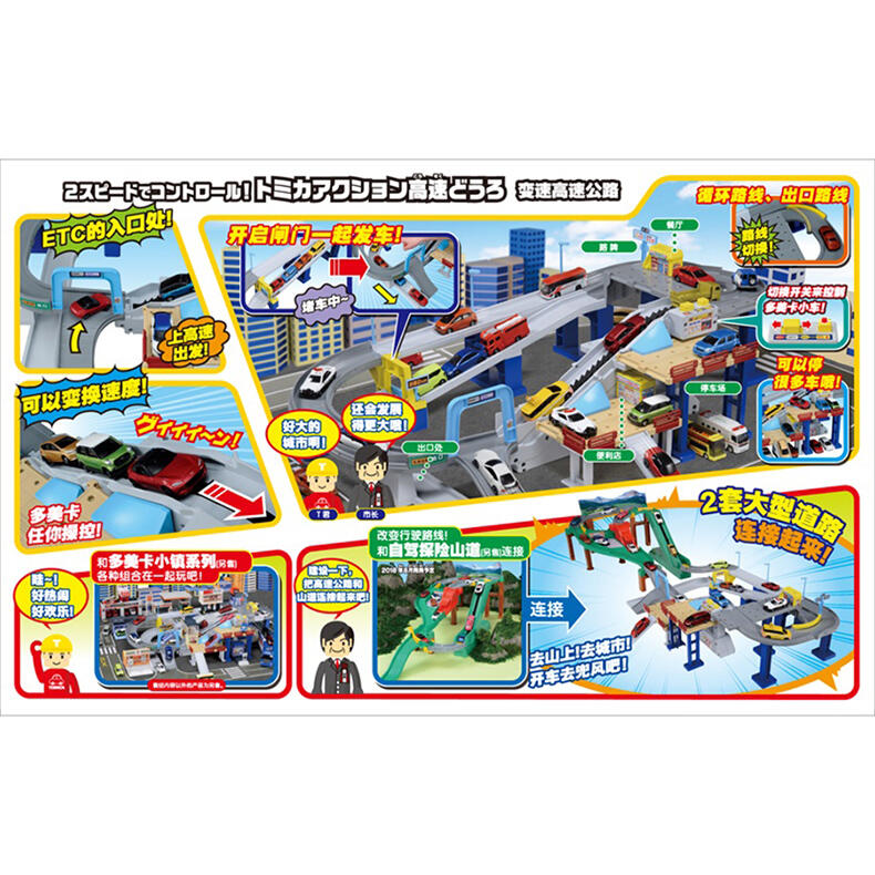 日本TOMY/多美卡合金小汽车电动轨道套装礼变速高速公路,适3岁+、附1辆车、加送1辆合金车+电池
